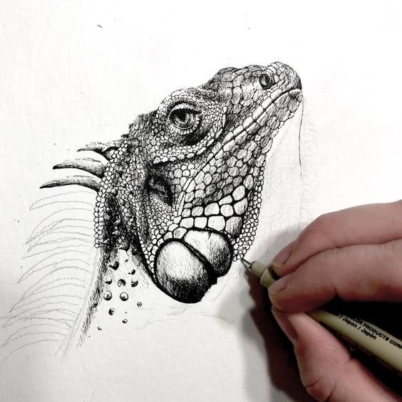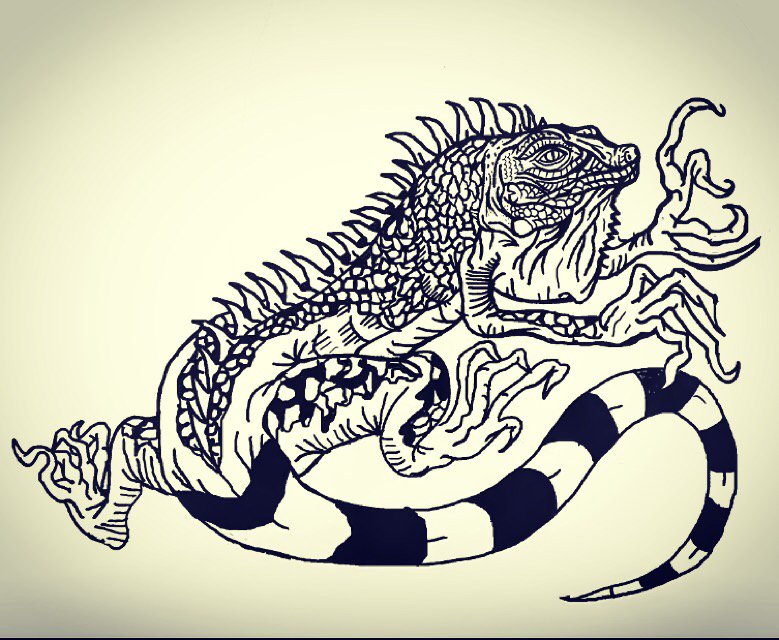 Tattoos Vorlagen von Leguan werden sowohl wegen Sinnbedeutung, als auch wegen des ästhetischen Aussehens gewählt. Das Reptilienbild kann in jedem Farbverhältnis erstellt werden, die Zeichnung sieht immer natürlich aus, da der Körper des Leguans mit changeanten Schuppen bedeckt ist. Dieses Bild wird die Aufmerksamkeit jedes Passanten auf sich ziehen, da es sehr beeindruckend aussieht. Tattoo hat nicht eine Bedeutung, es hat mehrere interessante Interpretationen.