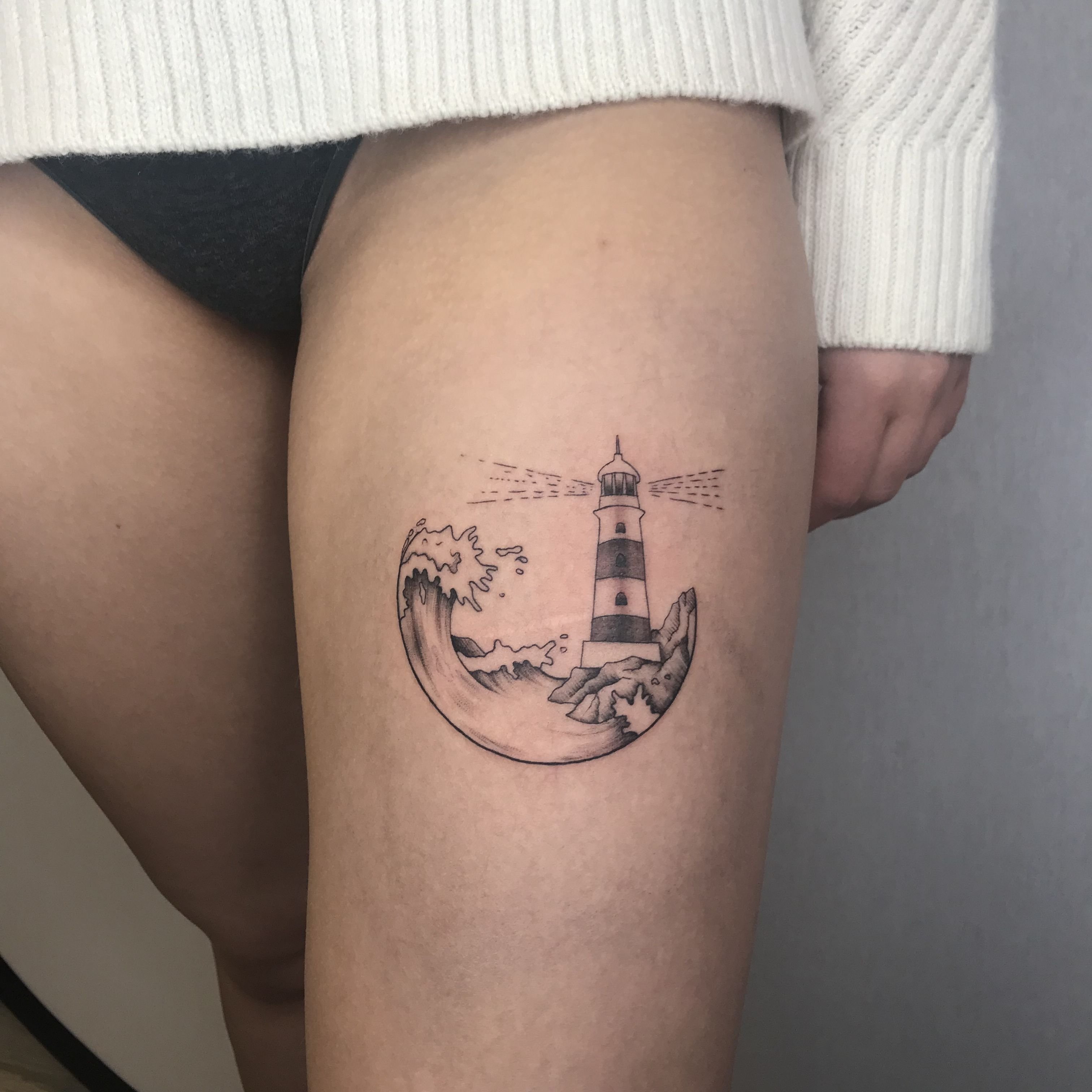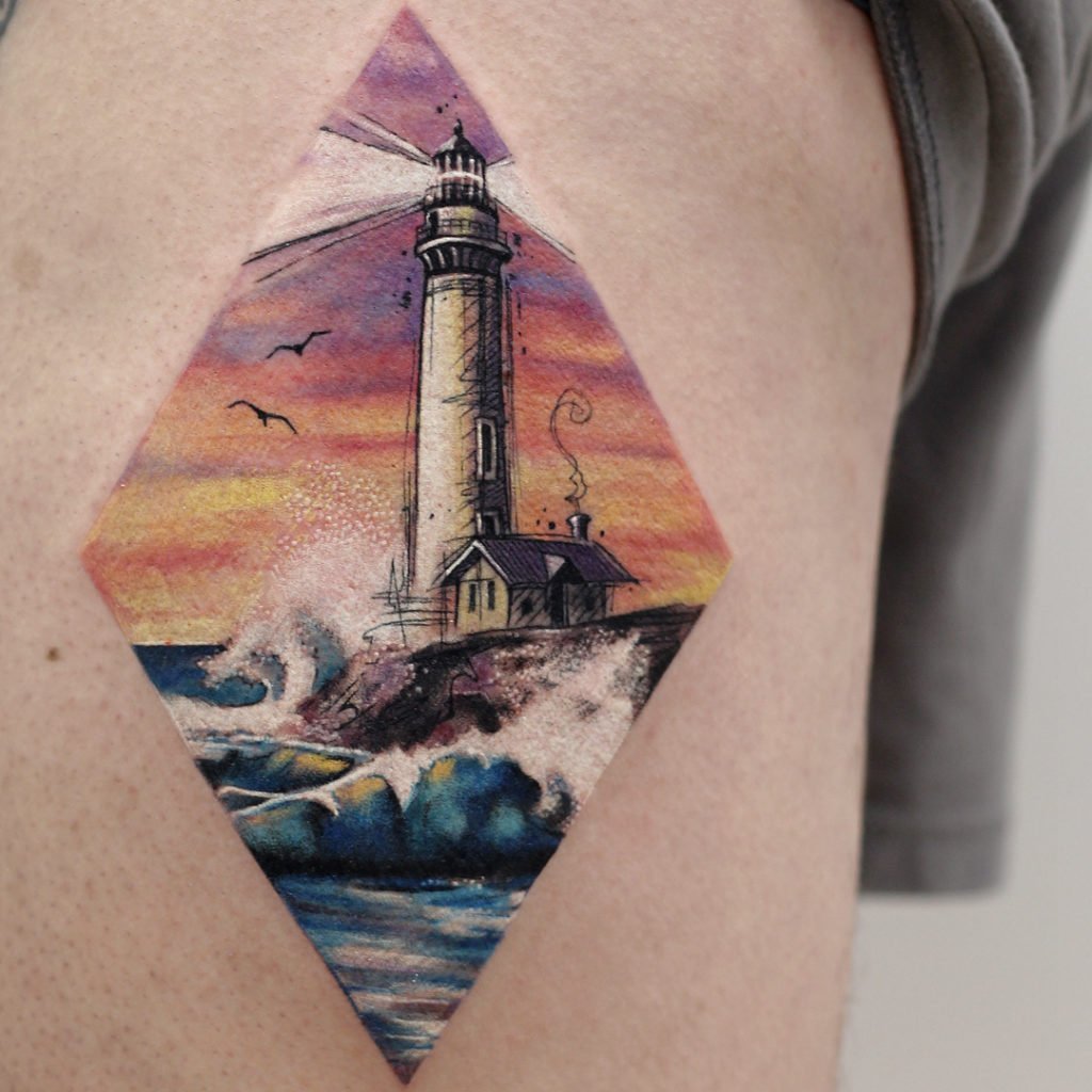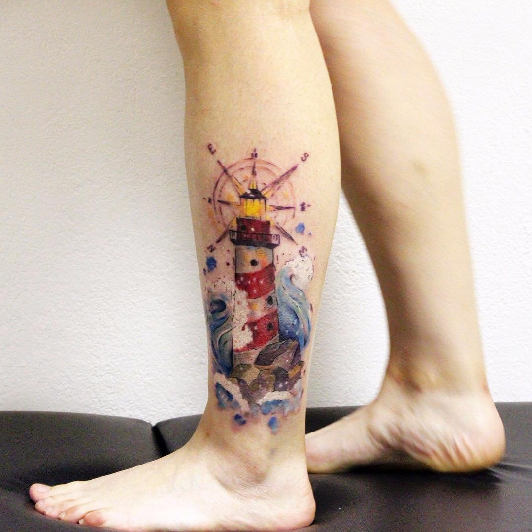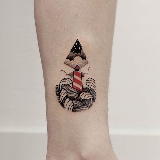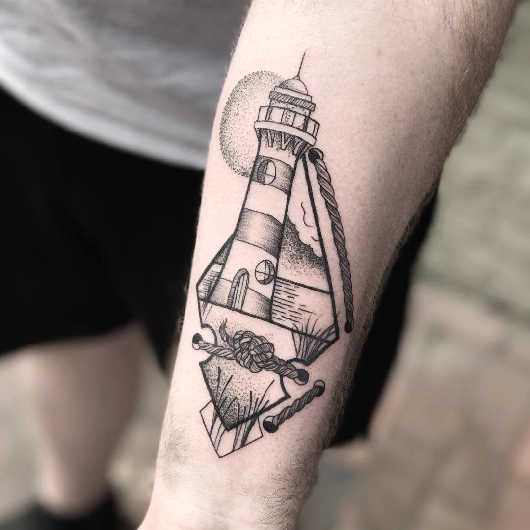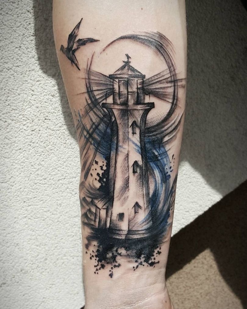 Die Bedeutung eines Leuchtturm-Tattoos ist ein Wegweiser, ein Orientierungspunkt in der Welt.