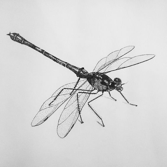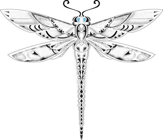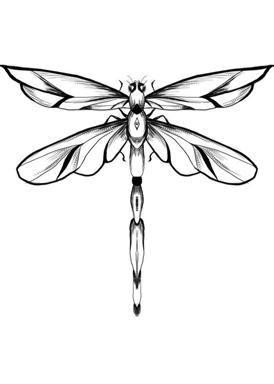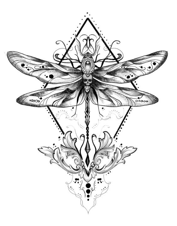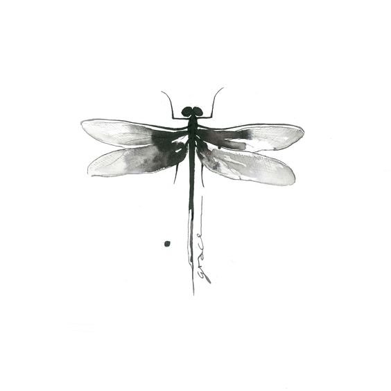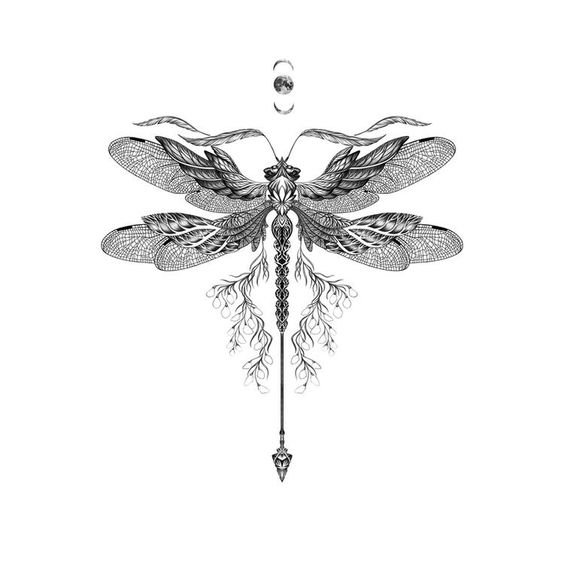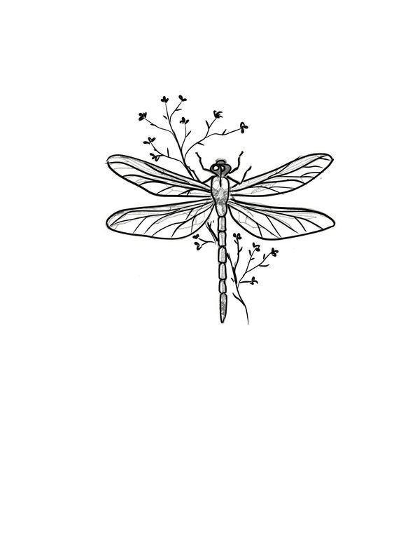 Fraurn lassen sich meist nur eine kleine Tätowierung an exponierten Stellen des Körpers stechen. Für Männer ist die Libelle Tattoo Skizze in einem größeren Muster getan.