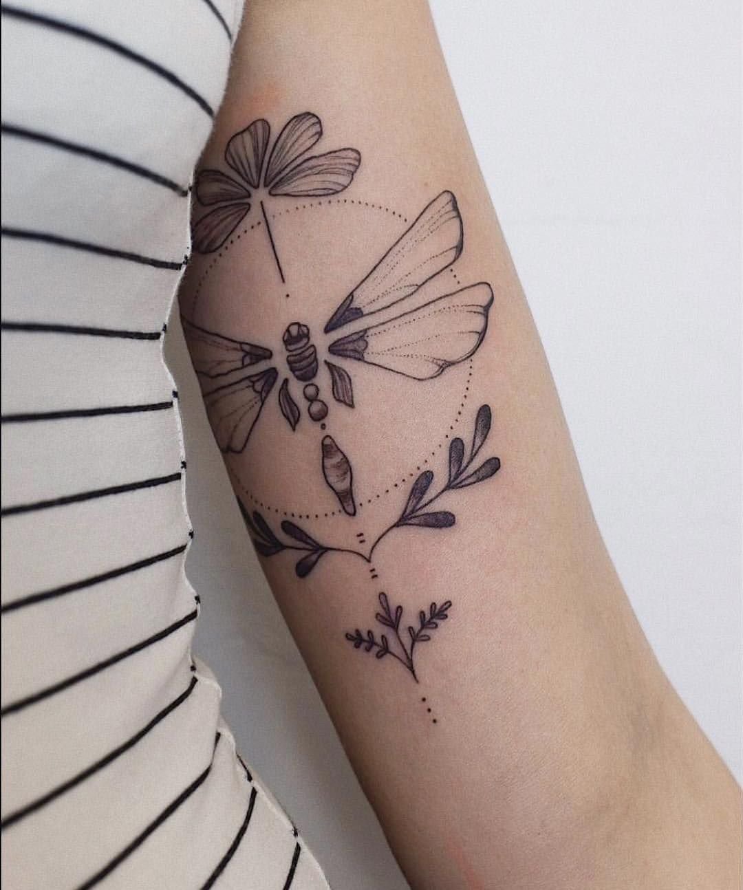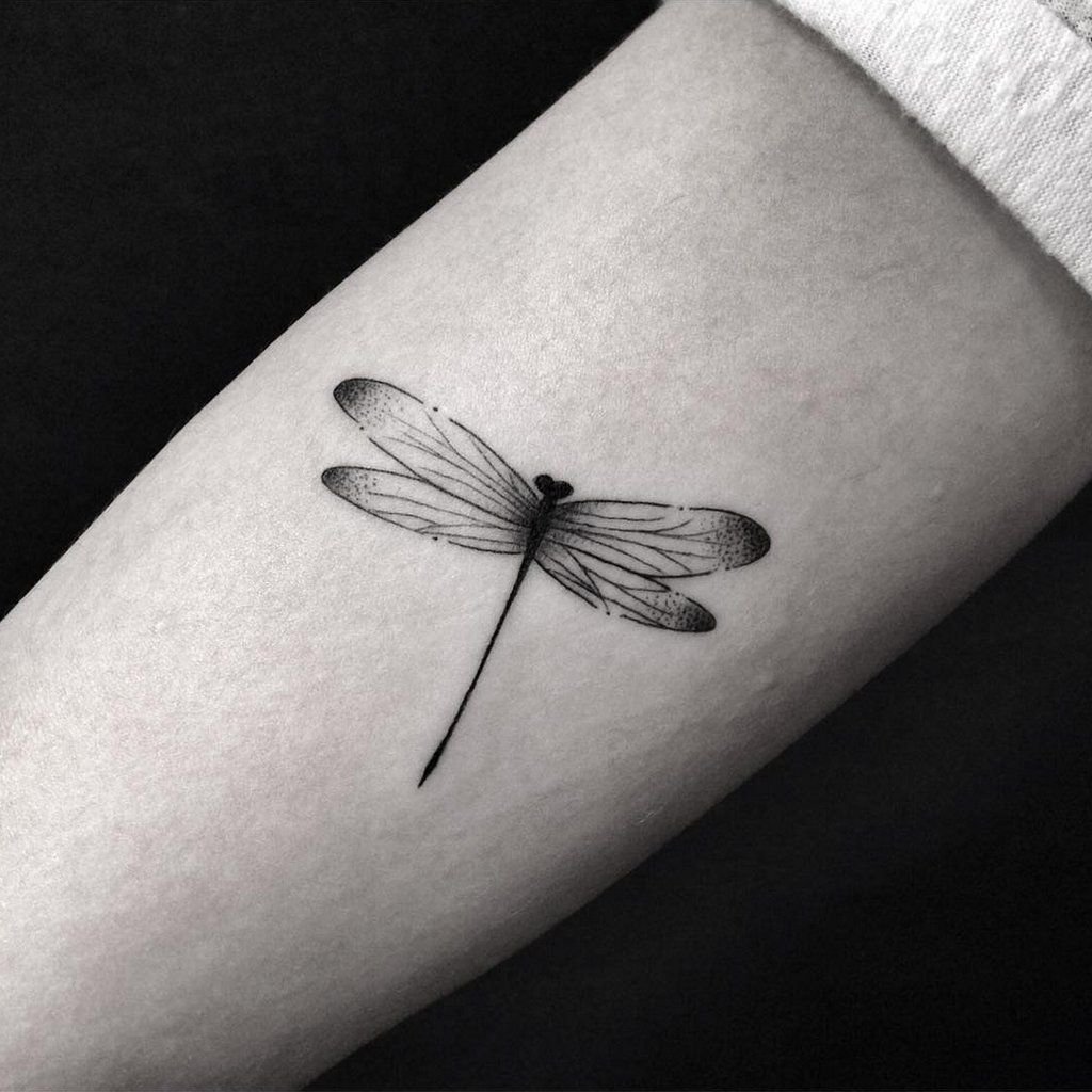 Eine Libelle ist eine sehr interessante und auffällige Tätowierung.