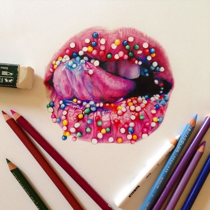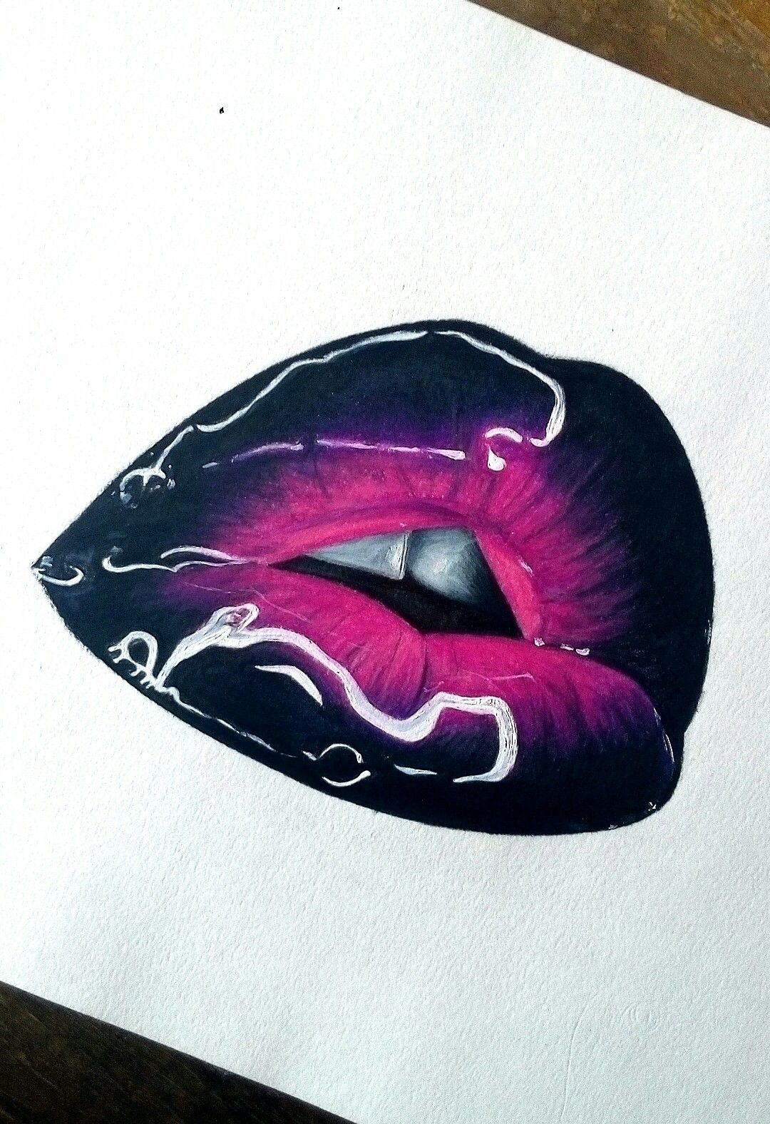 Vergessen wir nicht, dass es vielleicht gar keinen Grund gibt. Ein solches Bild kann einfach von jedem angewendet werden, der die Farbe und die Helligkeit dieses Körperteils mag. In diesem Fall kann das Werk viele Veränderungen erfahren: Die Form der Lippen kann die Form eines Lächelns annehmen, die Farbe kann beliebig werden, ebenso wie der Lippenstift, und auch die Fülle und Länge der Lippen, die ein nicht unwesentlicher Teil des Werkes ist, kann verändert werden.