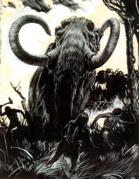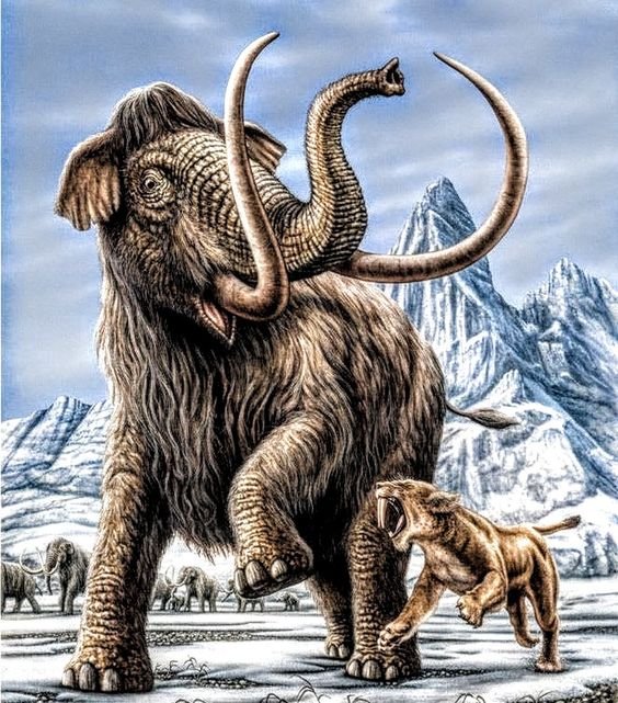 Das Mammut, der Urvater des Elefanten, war ein majestätisches Wesen mit einer dicken Wolldecke und riesigen Stoßzähnen, die sowohl zum Schutz als auch für kolossale Angriffe verwendet wurden. Diese imposanten Kreaturen zeichneten sich nicht durch Schnelligkeit oder Wendigkeit aus, aber ihre Kraft war wahrhaft enorm. Sie konnten nur von den stärksten Raubtieren gejagt werden, zu denen in der Zeit, als diese Tiere lebten, auch der Mensch gehörte. Die Jagd auf Mammut war äußerst herausfordernd, da selbst die kräftigsten Gegner kaum in der Lage waren, sich erfolgreich mit ihnen zu messen.
