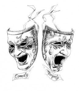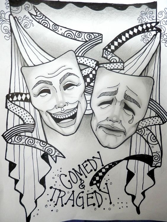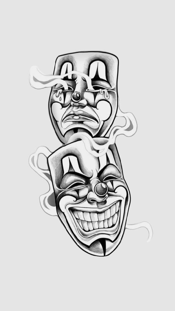 Das vertraute Bild der traurigen und glücklichen Masken stammt aus dem alten Griechenland und dem alten Rom. In der Antike benutzten Theaterschauspieler diese Masken, um ihre Gefühle auszudrücken. Die tragische Maske ist die Personifizierung von Melpomena-einer tragischen Muse. Die Maske mit dem Lächeln verkörpert die komödiantische, scherzhafte Muse Thalia. Seitdem dienen diese Masken als Symbol der Theaterkunst.