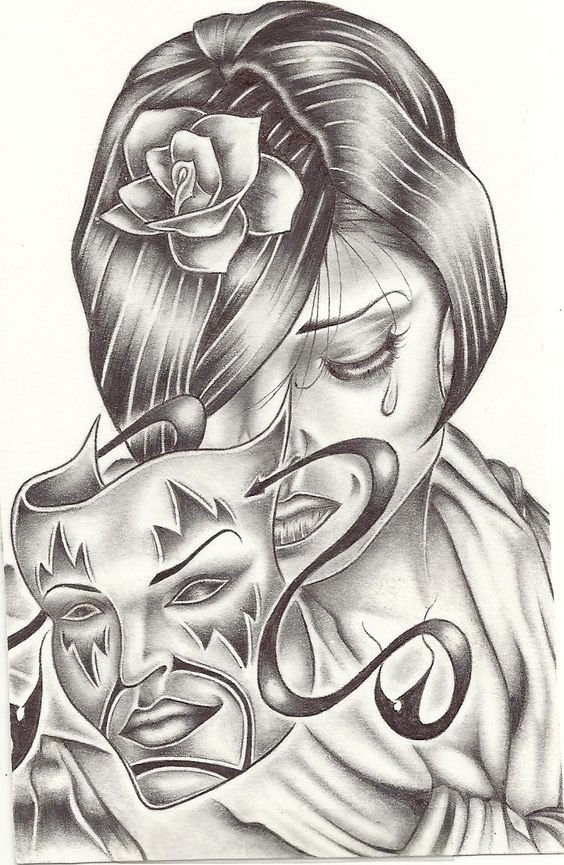 Maskierte Tattoos wurden ursprünglich von Menschen getragen, die mit Theater und Film in Verbindung gebracht wurden. Auf diese Weise demonstrierten sie ihre Verbundenheit mit der Kunst. Doch im Laufe der Zeit hat das Maskentattoo auch bei Menschen an Beliebtheit gewonnen, die nichts mit der Theater- oder Filmkunst zu tun haben. Das klassische Design hat sich ebenfalls verändert, und heute gibt es viele Variationen des Bildes von Masken. Menschen, die dieses Bild für ein Tattoo wählen, neigen dazu, eine geheimnisvolle Natur zu haben. Solche Menschen werben nicht für ihre Emotionen und Erfahrungen und verstecken sie unter der Maske der Ruhe und Gleichgültigkeit.