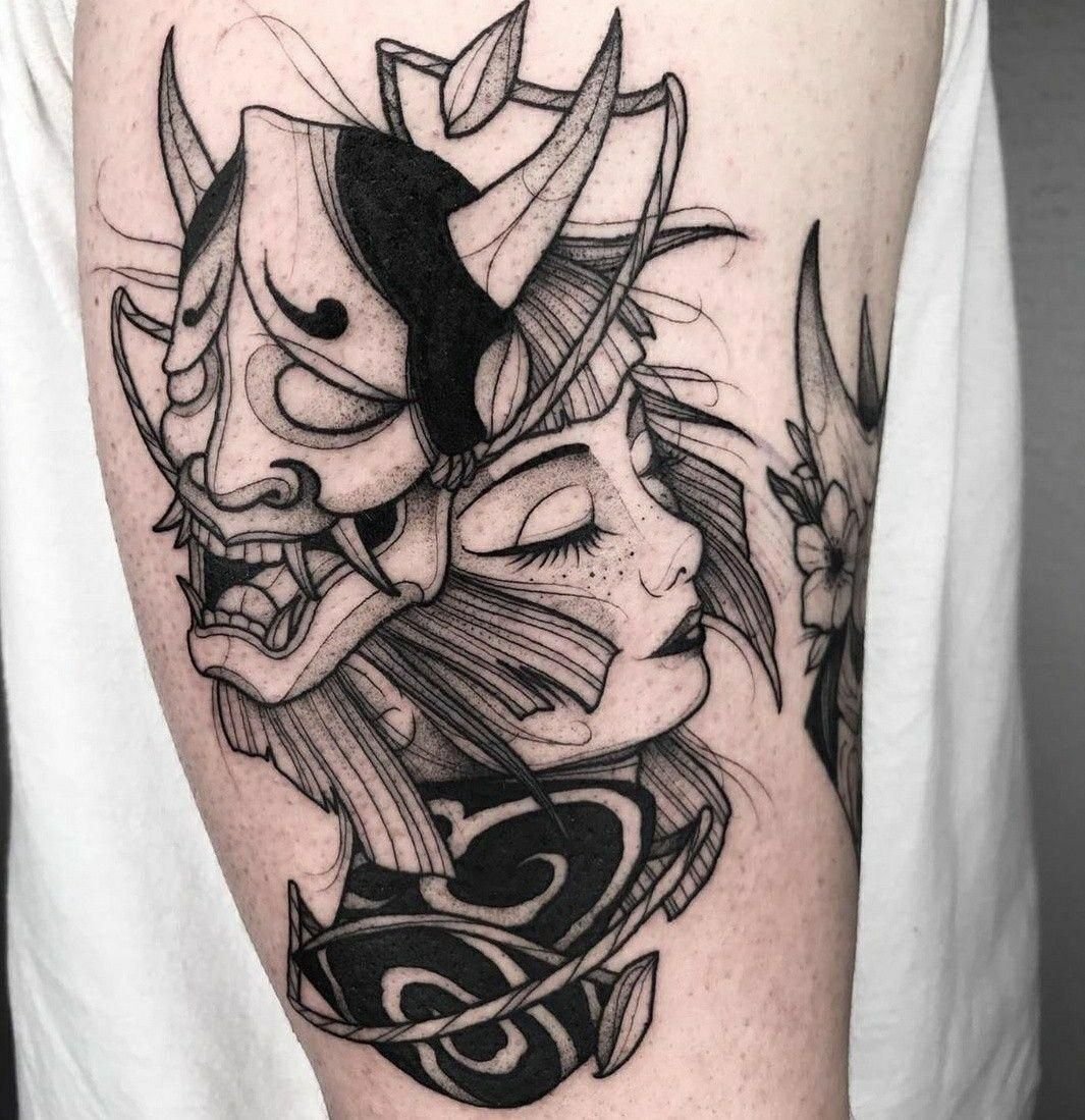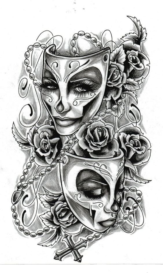 Das Maskentattoo ist ein universelles Bild, das für Männer und Frauen gleichermaßen zugänglich ist.