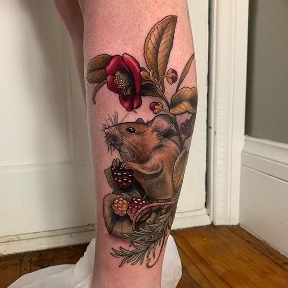 Das Tattoo einer Maus wird oft von Frauen gewählt, die flink und wendig sind. Diese Eigenschaften spiegeln sich auch im Charakter der Kundin wider, die sich für dieses Tattoo entscheidet. Sie ist agil und flexibel, was es ihr ermöglicht, Konflikten aus dem Weg zu gehen und Probleme schnell und effektiv zu lösen. Sie ist entschlossen und selbstbewusst, geht Herausforderungen mit Geschicklichkeit und Schnelligkeit an, ähnlich wie eine Maus, die geschickt Hindernisse überwindet.