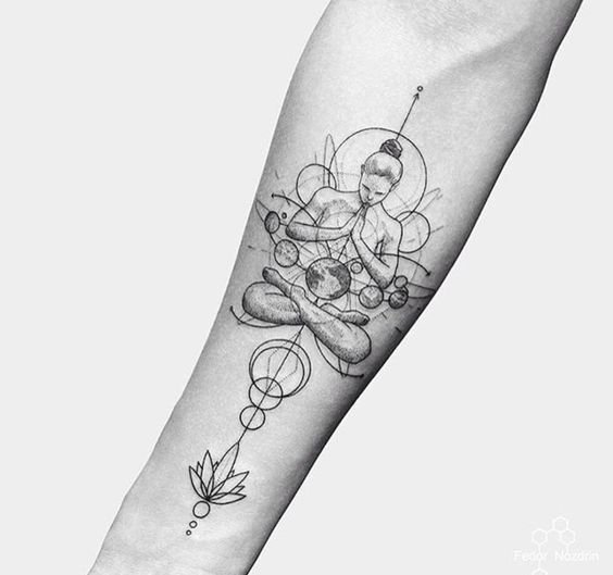 Tibetischer Mönch in Form einer Tätowierung hat eine etwas andere Bedeutung. Es kann ein Mönch im Lotussitz sein, der meditiert und den höchsten Zustand der Erleuchtung erreicht. Hier geht es um Ruhe, Entspannung und Relaxation. Eine Person mit einem solchen Tattoo wird so ruhig und autark, friedlich und vernünftig sein wie ein Tattoo-Charakter. Er zeichnet sich nicht durch emotionale Ausbrüche, spontane Stimmungsveränderungen aus. Eine andere Option - er hat diese Befriedung erreicht, da er zuvor teilweise cholerisch war.