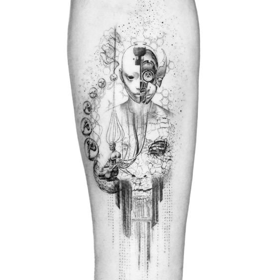 Die Art der Umsetzung auf dem Körper liegt ganz beim Kunden. Es kann ein mehrfarbiges Kunstwerk mit vielen Details sein, eine Schwarz-Weiß-Zeichnung mit Grautönen, die Hinzufügung von Schatten oder auch deren Abwesenheit – die Möglichkeiten sind vielfältig und individuell anpassbar.