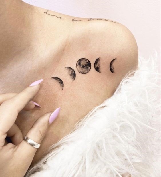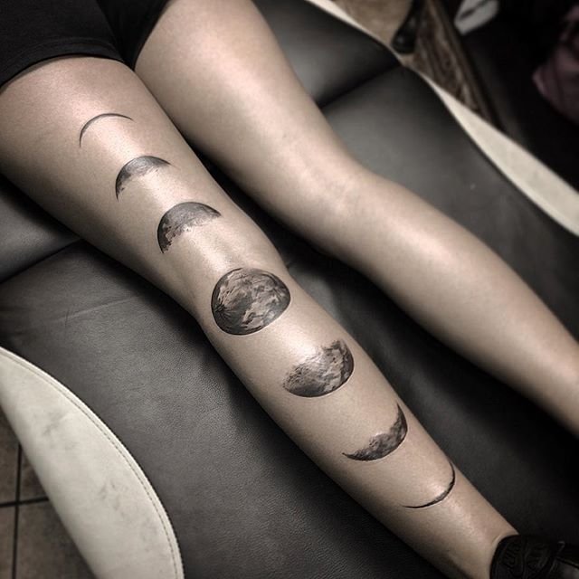 Das Tattoo mit dem Bild des Mondphasen ist mit einer tiefen Interpretation ausgestattet und ist universell. Viele Männer, wie Frauen, wählen das Mondphasen-Tattoo, das alle mit seinem Geheimnis anzieht.