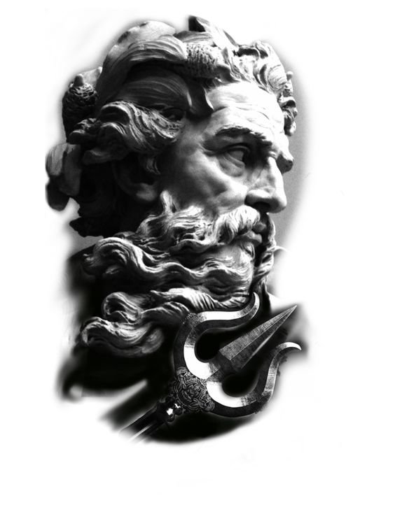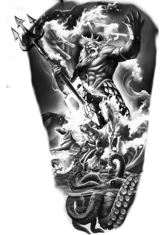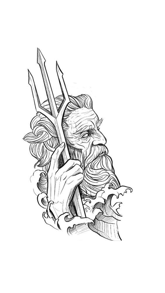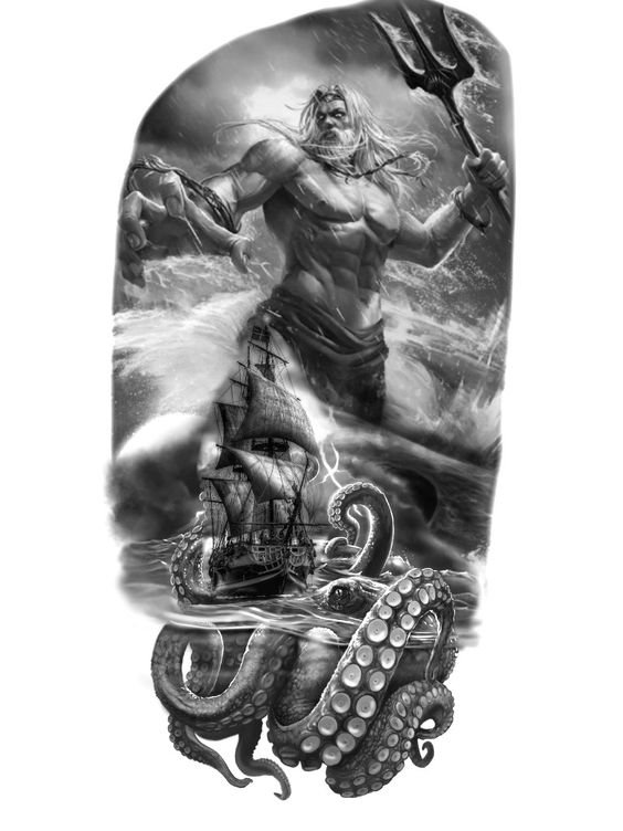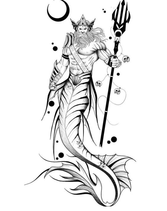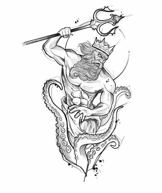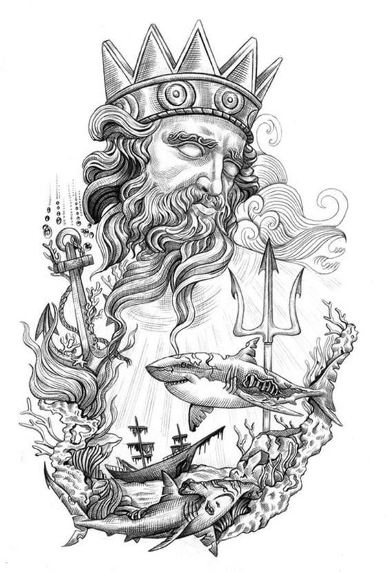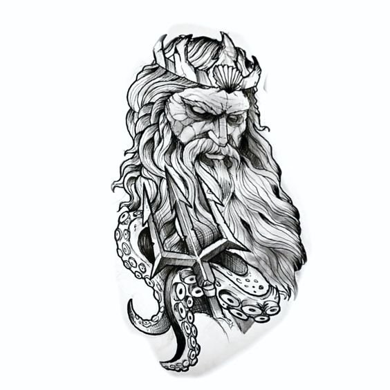 Der Gott der Meere und Ozeane, zu dessen Ehren der Planet unseres Sonnensystems benannt wurde, Neptun ist eine sehr umstrittene Skizze für ein Tattoo, die viele Interpretationen hat.