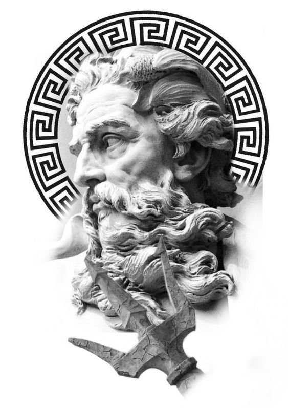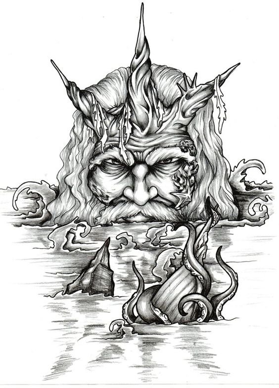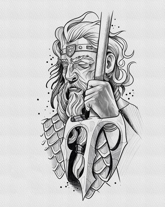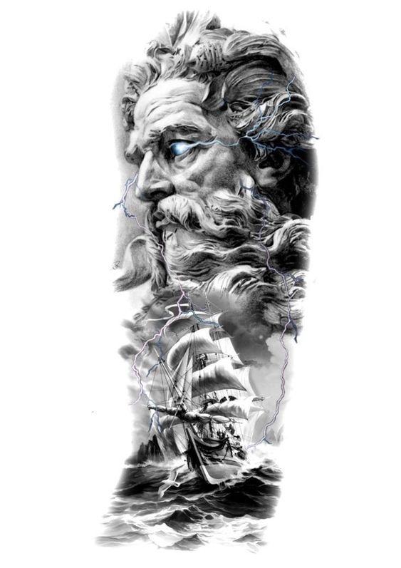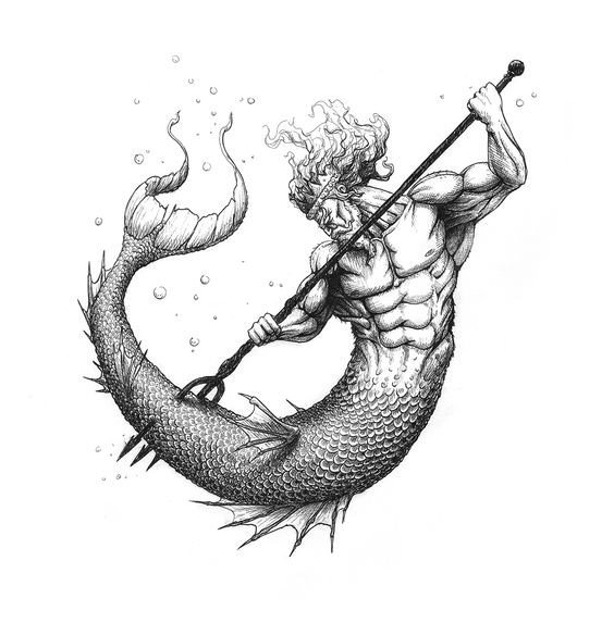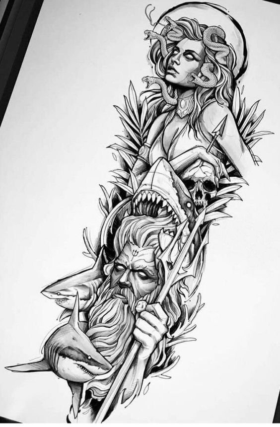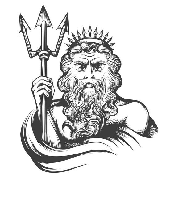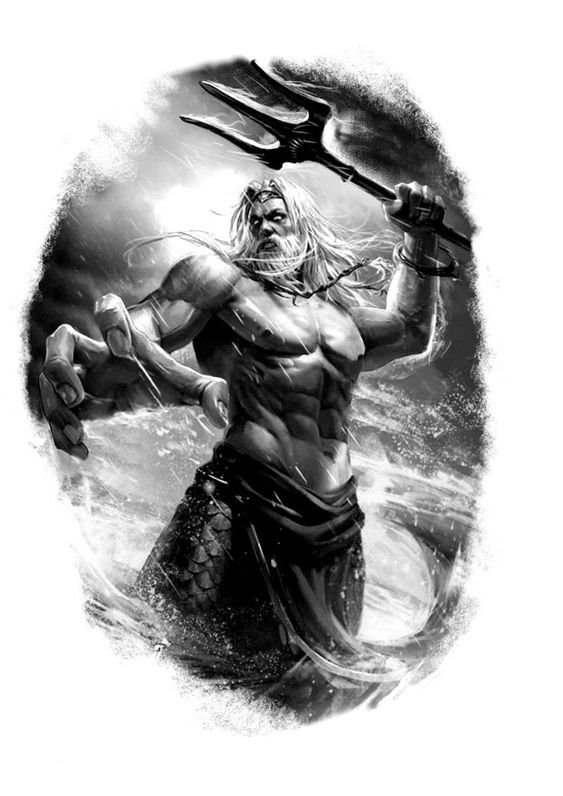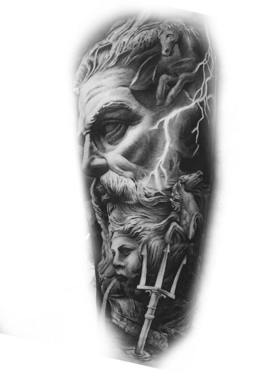 Der Gott der Meere und Ozeane, zu dessen Ehren der Planet unseres Sonnensystems benannt wurde, Neptun ist eine sehr umstrittene Skizze für ein Tattoo, die viele Interpretationen hat.