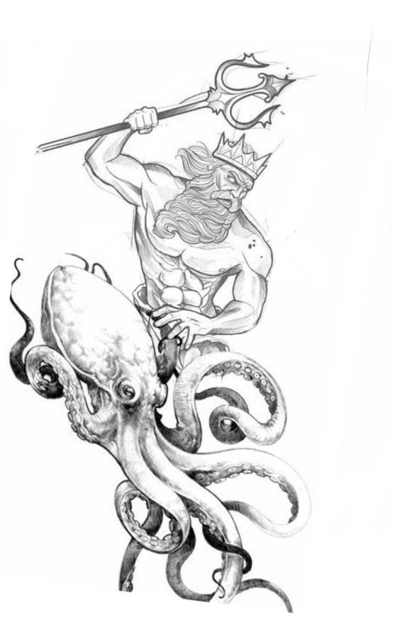 Die erste Bedeutung des Tattoos, dass den Gott Neptun darstellt, ist das Wasserelement.