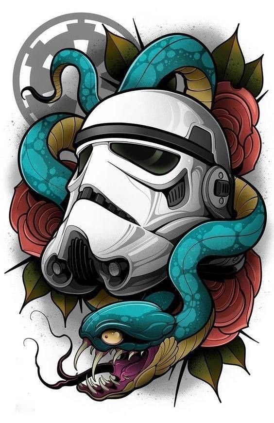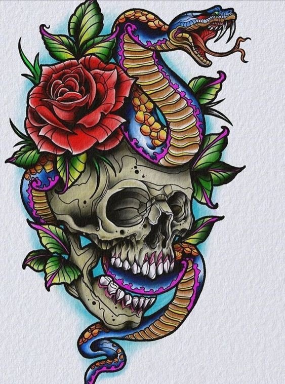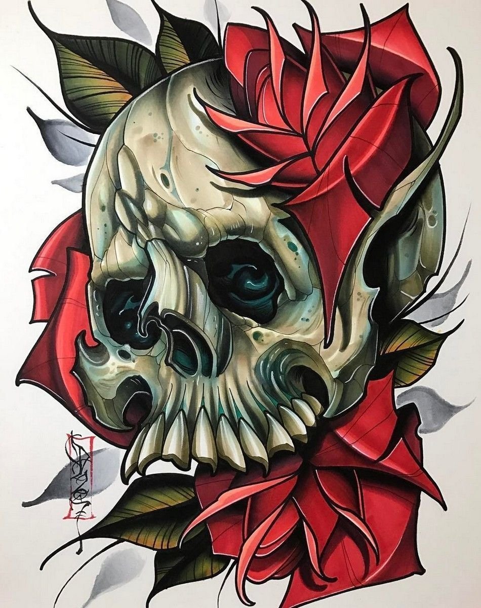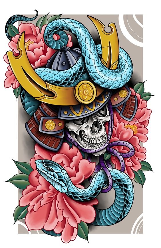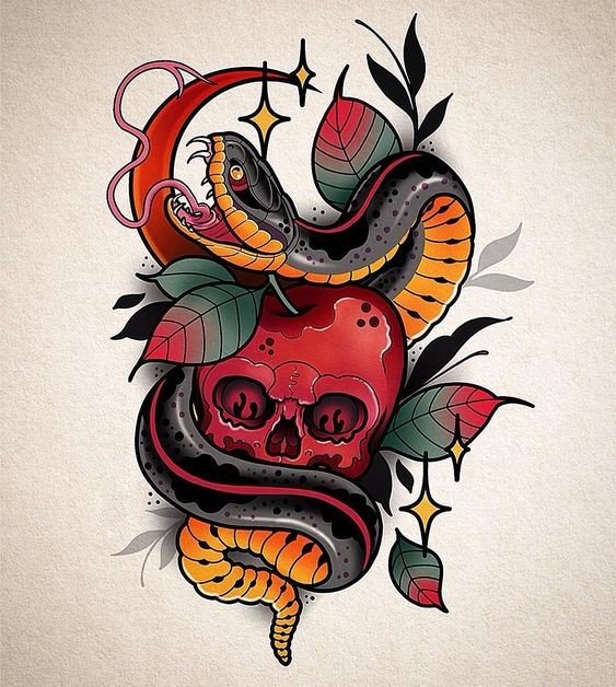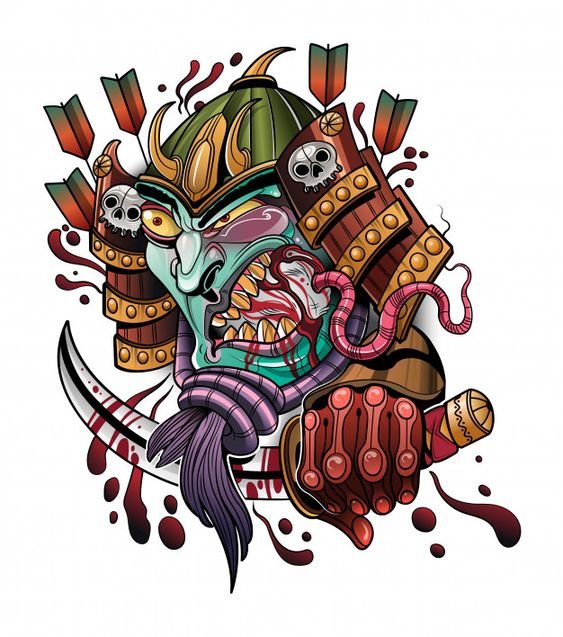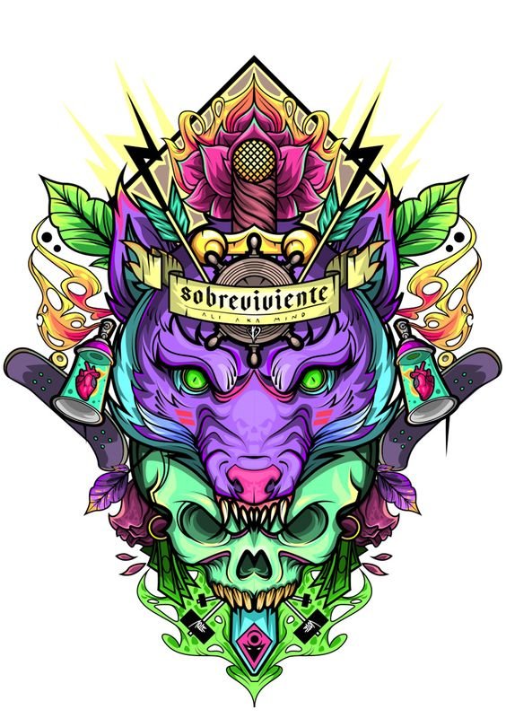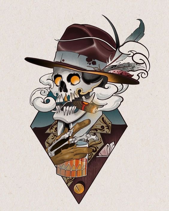 Sehr oft gibt es Tattoo-Vorlagen von New School, in denen alle Stilrichtungen gemischt sind.