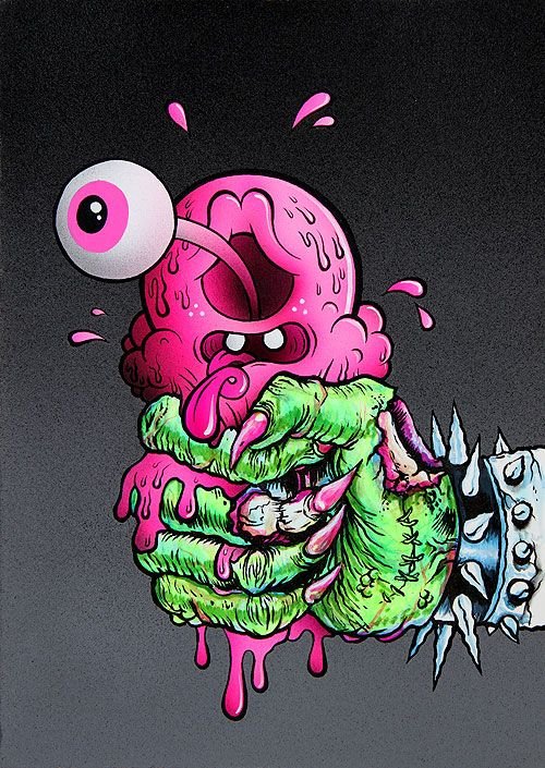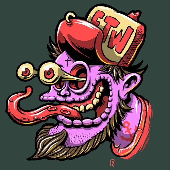 - Die Richtung neuer Traditionen ist die klassische Richtung von New School, in der Zeichentrickfiguren abgebildet sind.