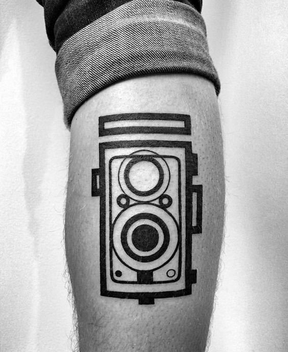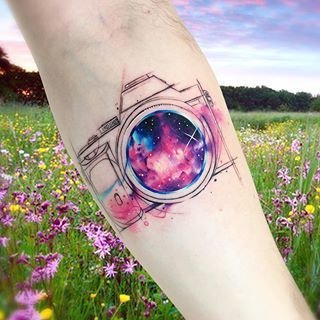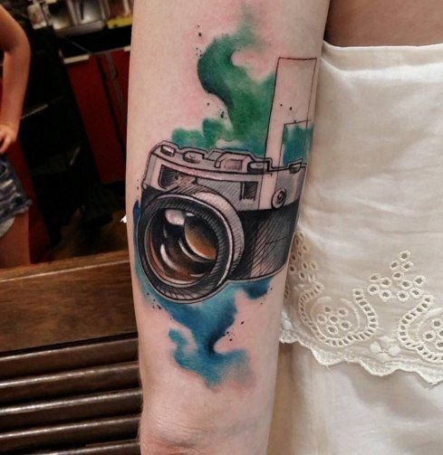 Für Fans des "Retro"-Themas können Sie jederzeit eine Skizze mit dem Bild einer alten Kamera abholen, die ihrem Stil entspricht. Wenn Sie keine Skizze finden, können Sie sich jederzeit an einen Tätowierer wenden, der in Ihrem gewählten Stil arbeitet. Somit erhalten Sie genau das, was Sie wollen.