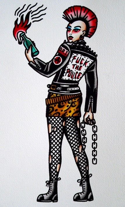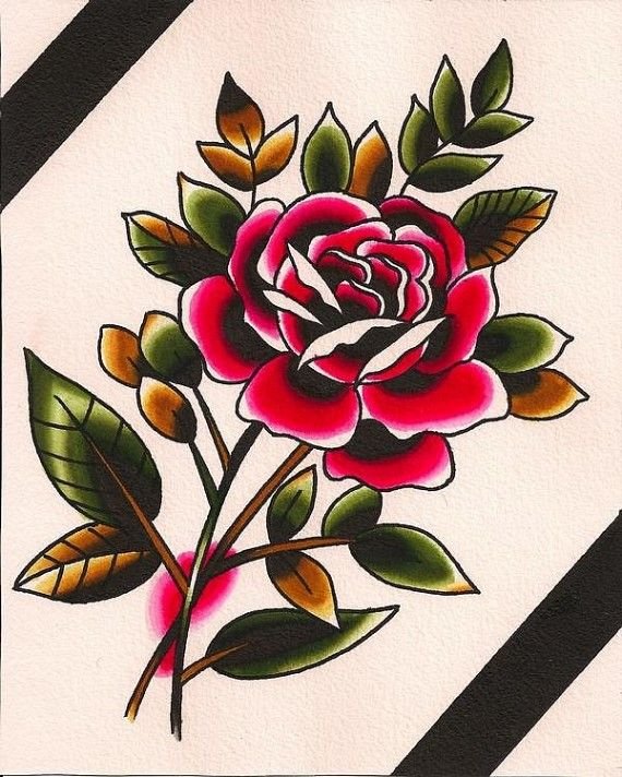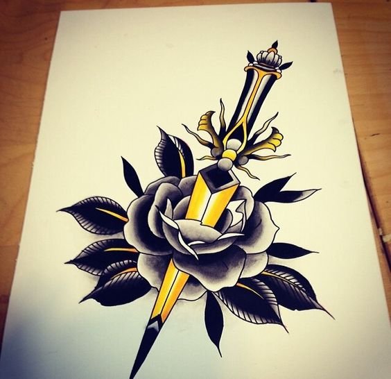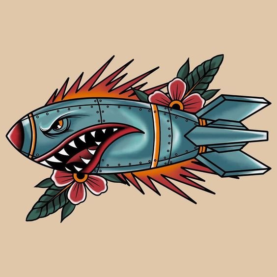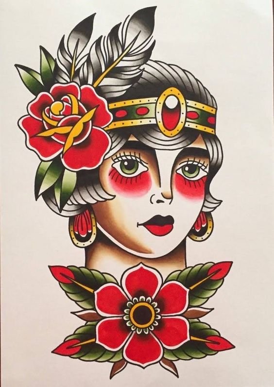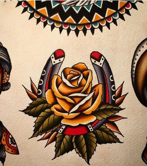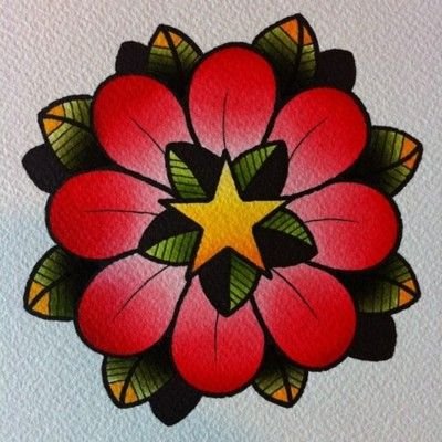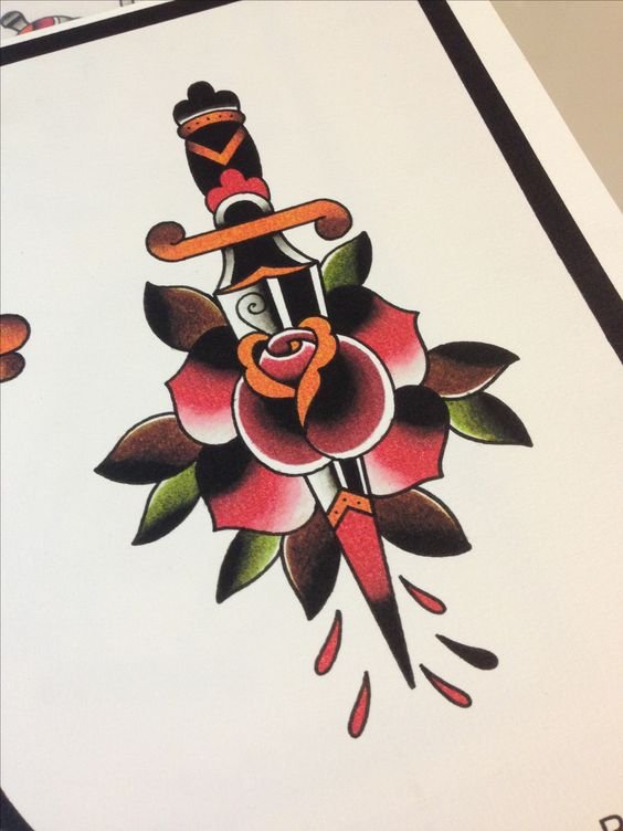 Old School Vorlagen lassen sich leicht von anderen Tattoo-Stilen durch die grelle Farbpalette sowie durch die kräftige schwarze Kontur unterscheiden.