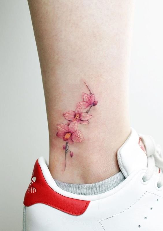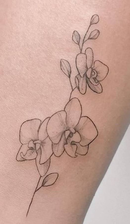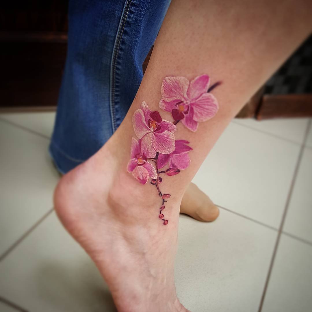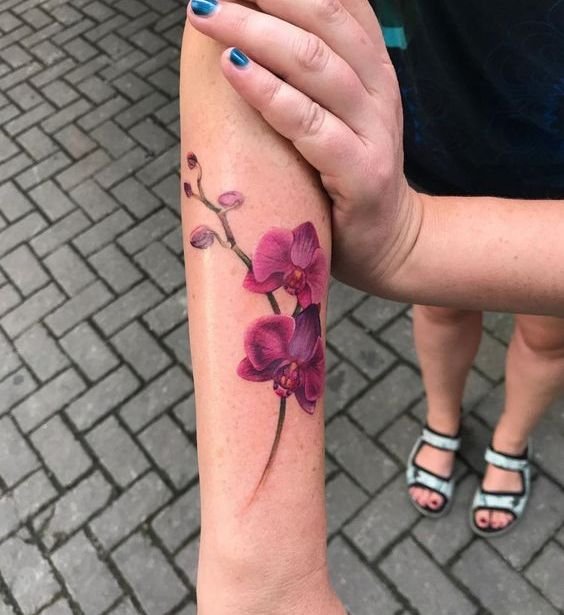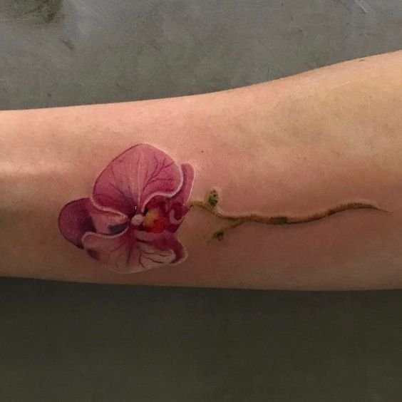 Ein Orchideen-Tattoo kann in ganz verschiedenen Farben gemacht werden, alles hängt von den Vorlieben des Kunden ab.