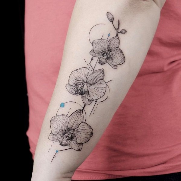 Orchideen-Tattoos werden sowohl von Frauen als auch von Männer geschätzt. In der weiblichen Hälfte symbolisiert die Orchideenblüte einen Talisman, der vor Problemen, Widrigkeiten, bösen Blicken und Zungen schützt. Es wird angenommen, dass eine abgebildete Orchideenblüte auf dem Körper einer jungen Frau ihr hilft, einen geliebten Menschen zu finden, basierend auf der Legende der Göttin Orchidee. Das Bild einer Orchideenblüte ist auch ein Talisman für Bräute, der einer jungen Familie Frieden und Wohlstand bringt. Ein Orchideen-Tattoo betont die weibliche Zärtlichkeit, Fürsorglichkeit, innere Schönheit, Charme und Sexualität perfekt. Es verleiht seinem Besitzer auch Vertrauen in seine Schönheit. Weibliche Tattoos werden in der Regel in sanften Farbtönen ausgeführt und können mit Ergänzungen wie Schmetterlingen versehen sein. Beliebte Stellen für die Skizze sind das Schulterblatt, der Rücken, die Hüfte oder die Rippe, was sehr feminin und originell aussieht.