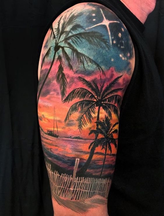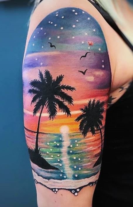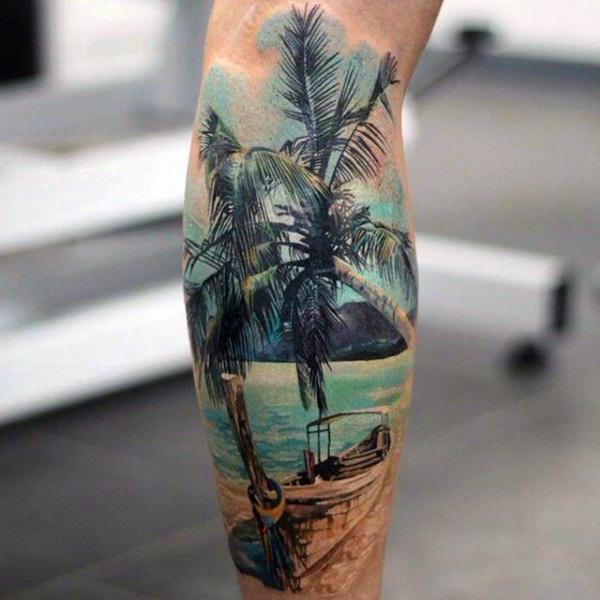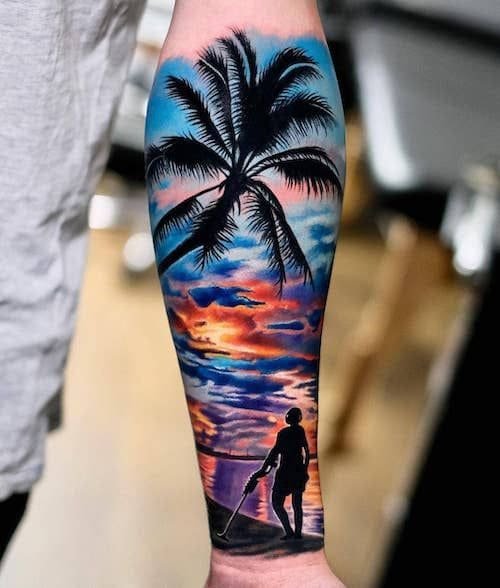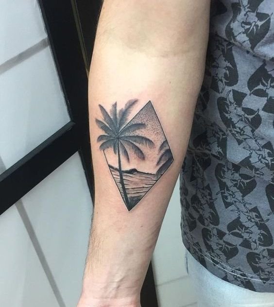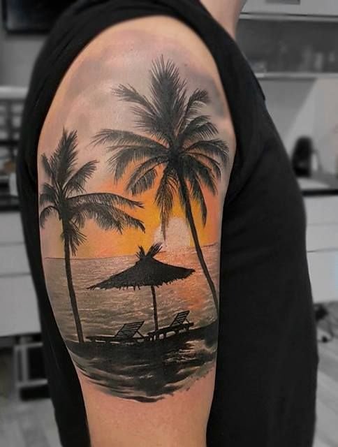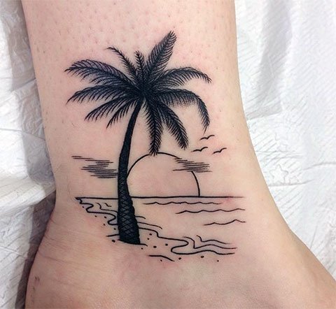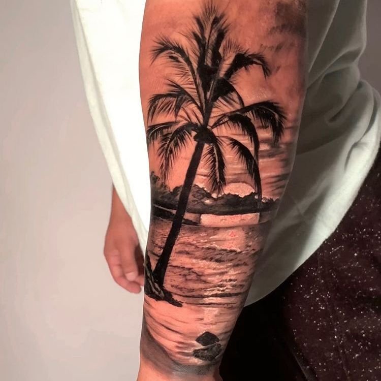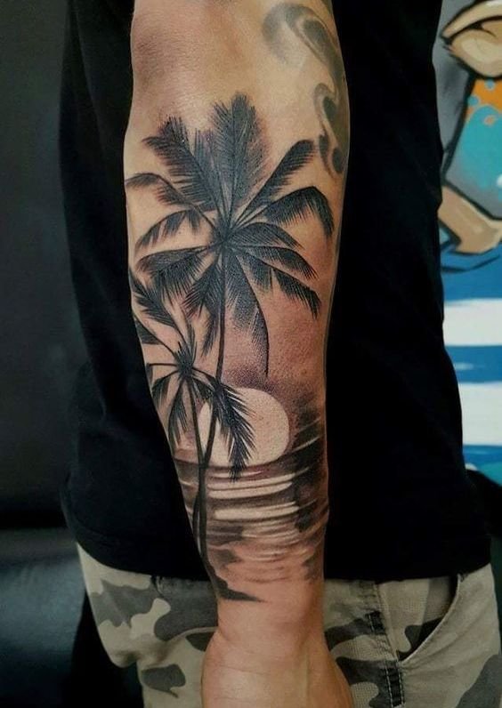 Wenn das Tattoo Palmen mit Kokosnüssen oder Datteln zeigt, symbolisiert es, dass die Person ein liebevoller Familienmensch ist, bei dem die Kinder immer an erster Stelle stehen. Darüber hinaus sind Tattoos, die einen Sandstrand oder exotische Vögel darstellen, sehr beliebt, da sie viele positive Emotionen vermitteln. In jedem Fall strahlt ein Palmen-Tattoo nur positive Energie aus und wird oft als Talisman gegen Unglück und Probleme betrachtet.