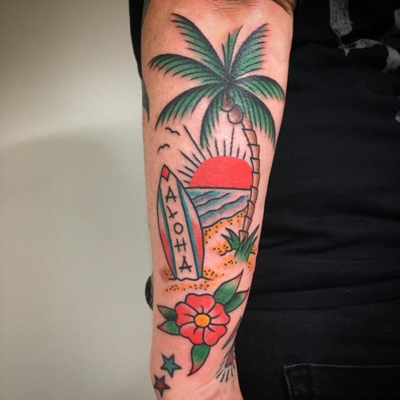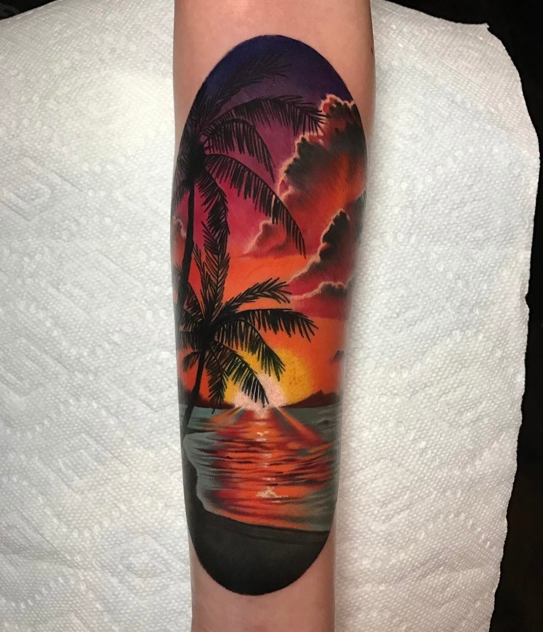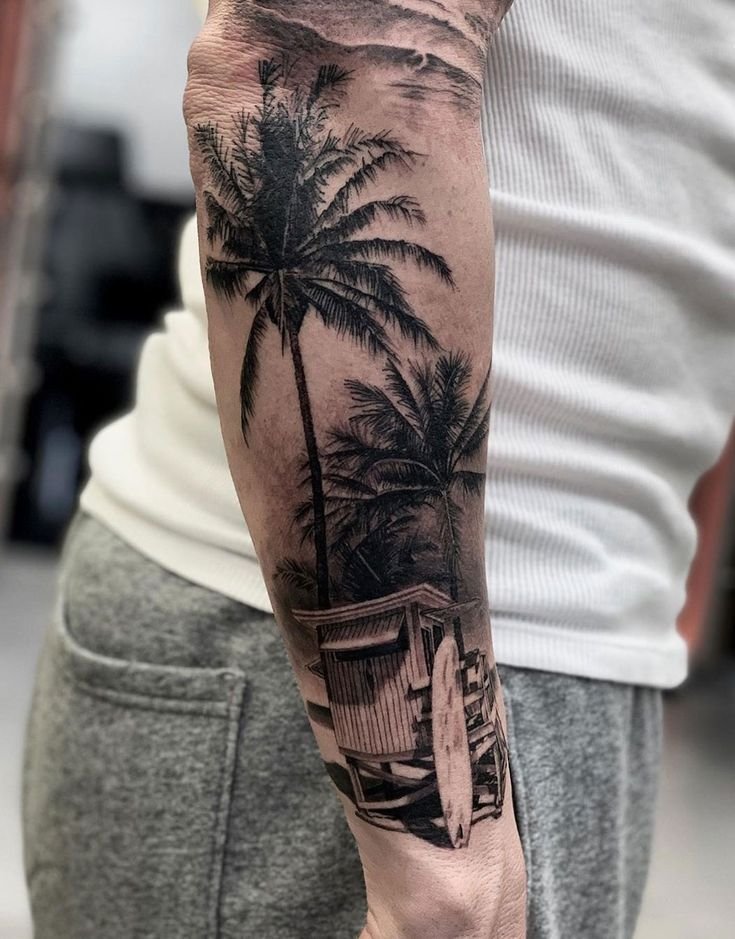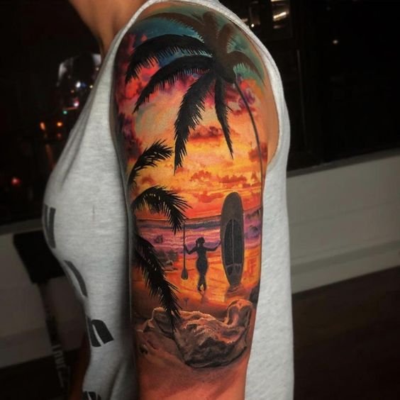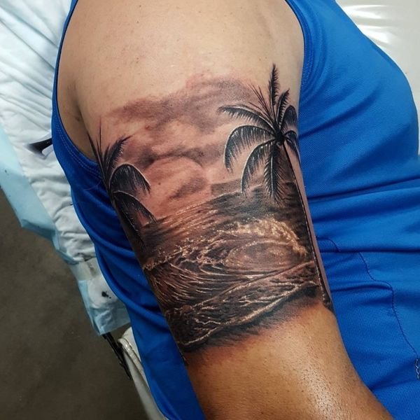 Wenn das Tattoo Palmen mit Kokosnüssen oder Datteln zeigt, symbolisiert es, dass die Person ein liebevoller Familienmensch ist, bei dem die Kinder immer an erster Stelle stehen. Darüber hinaus sind Tattoos, die einen Sandstrand oder exotische Vögel darstellen, sehr beliebt, da sie viele positive Emotionen vermitteln. In jedem Fall strahlt ein Palmen-Tattoo nur positive Energie aus und wird oft als Talisman gegen Unglück und Probleme betrachtet.