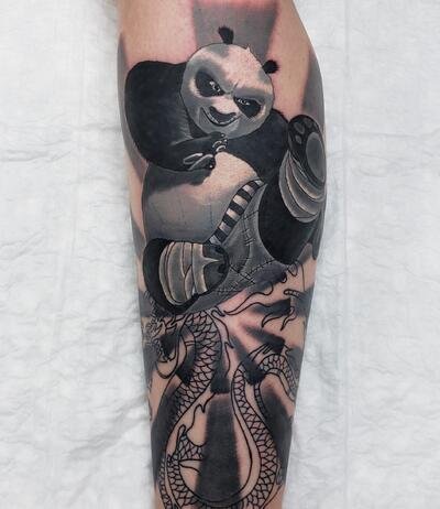 Das Kung-Fu-Panda-Tattoo ist ein Symbol für Mut, Tapferkeit, Einfallsreichtum, Freundlichkeit und Freundschaft. Die Darstellung der Figur kann auf verschiedene Weisen erfolgen: humorvoll, um dem Träger der Tätowierung einen Sinn für Humor zu verleihen, oder ernster und männlicher, um Mut und Tapferkeit zu betonen. In dieser Ausführung werden dunklere Töne verwendet, und der Panda zeigt eine ernstere Mimik. Es gibt auch Versionen, auf denen der Panda in Angriffsposition oder mit einem Kampfgebrüll dargestellt ist. Solche Tattoos enthüllen die verborgenen Charaktereigenschaften des Besitzers. Obwohl die Person äußerlich ruhig und friedlich wirken mag, ist sie in der Lage, sich in bestimmten Situationen zu behaupten und ihre Interessen energisch zu verteidigen.