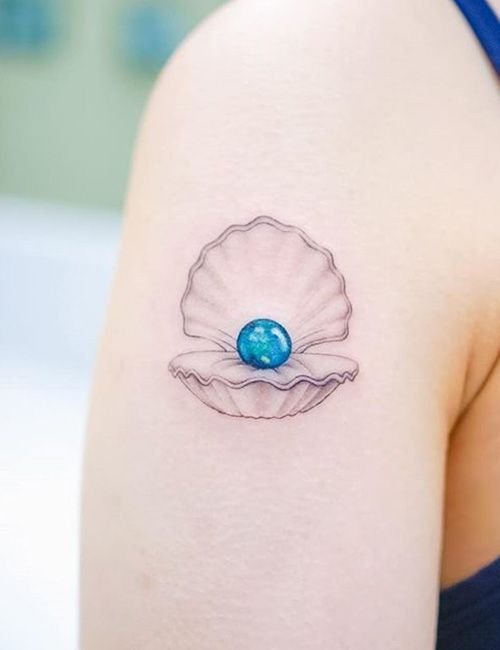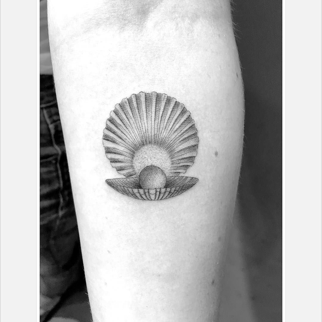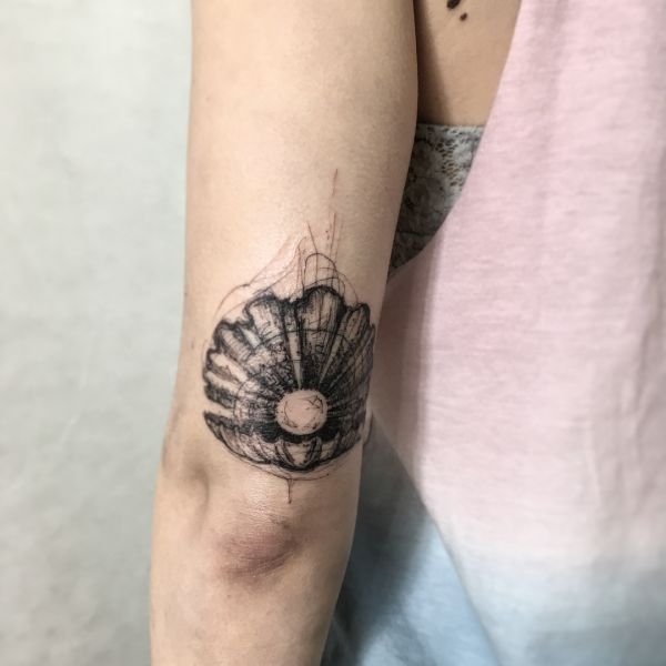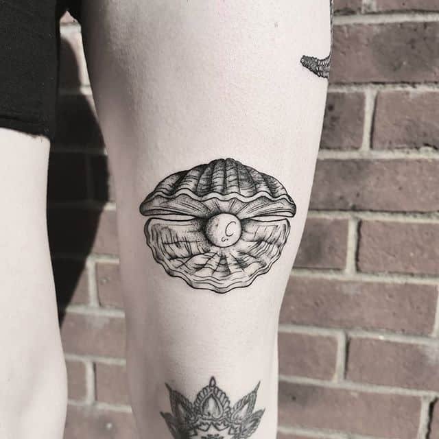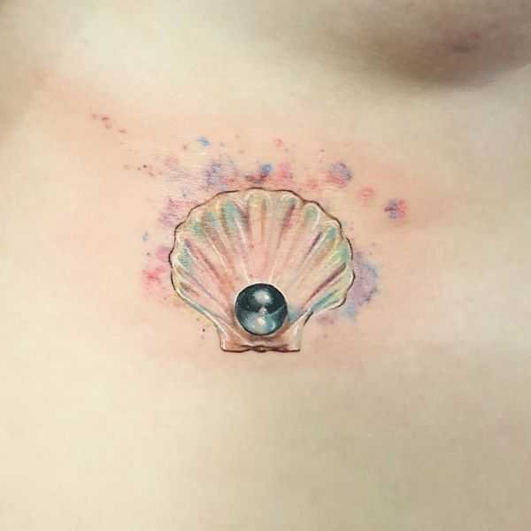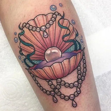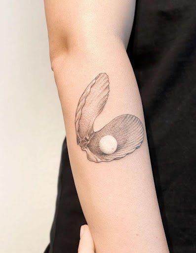 Die Perlentätowierung ist seit langem ein Symbol für innere Schönheit: Wie eine Perle, die in einer Muschel versteckt ist, ist die innere Schönheit vor dem Blick verborgen.