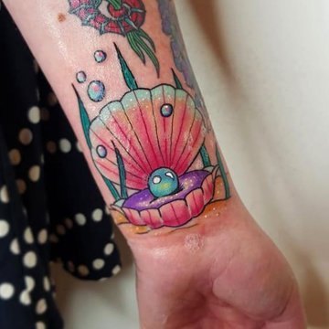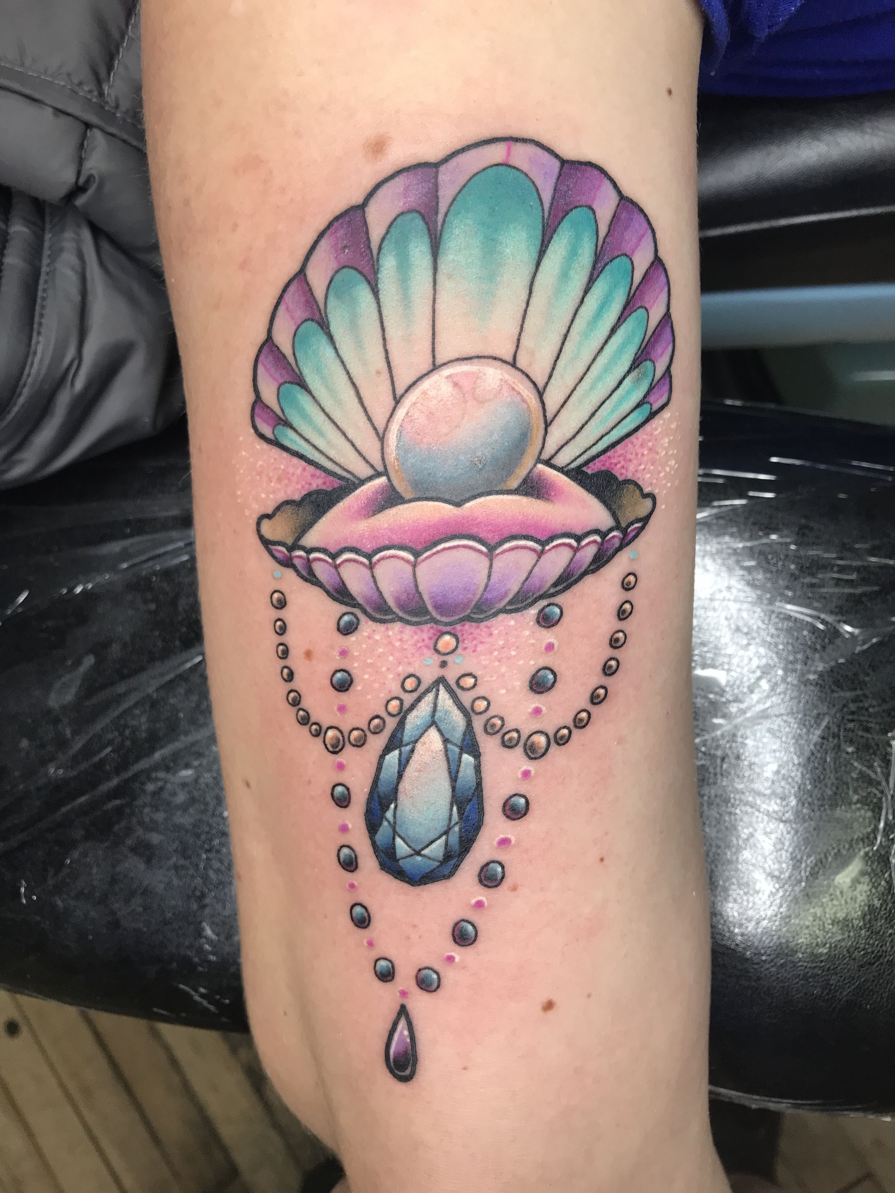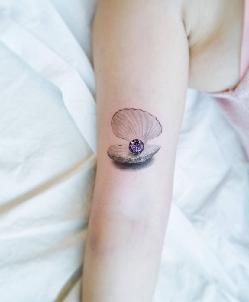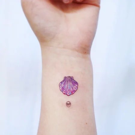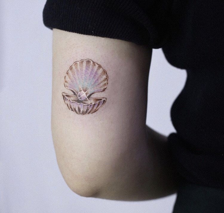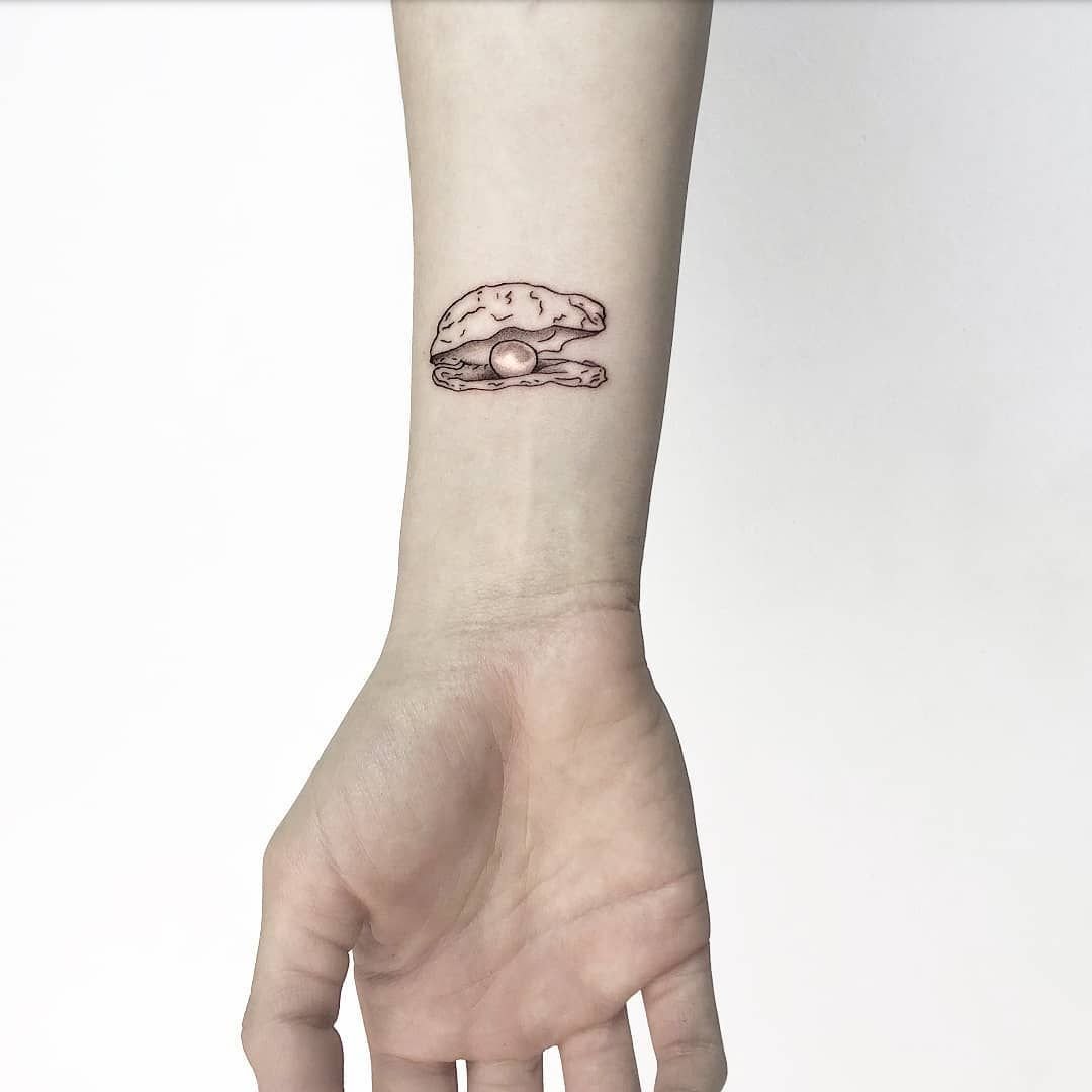 Die Perlentätowierung ist seit langem ein Symbol für innere Schönheit: Wie eine Perle, die in einer Muschel versteckt ist, ist die innere Schönheit vor dem Blick verborgen.