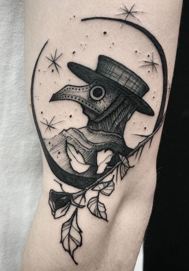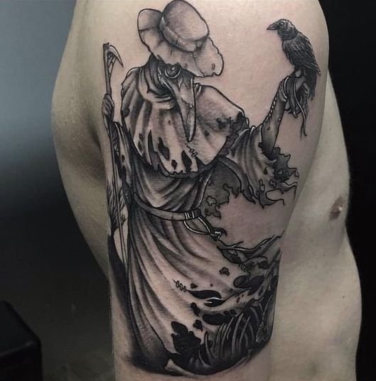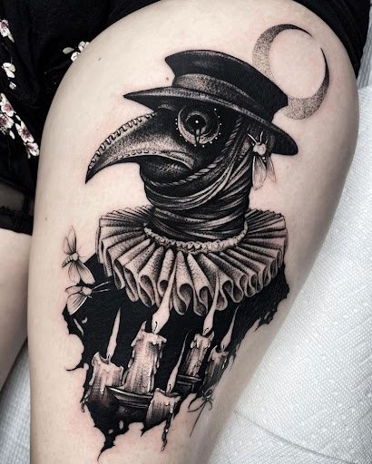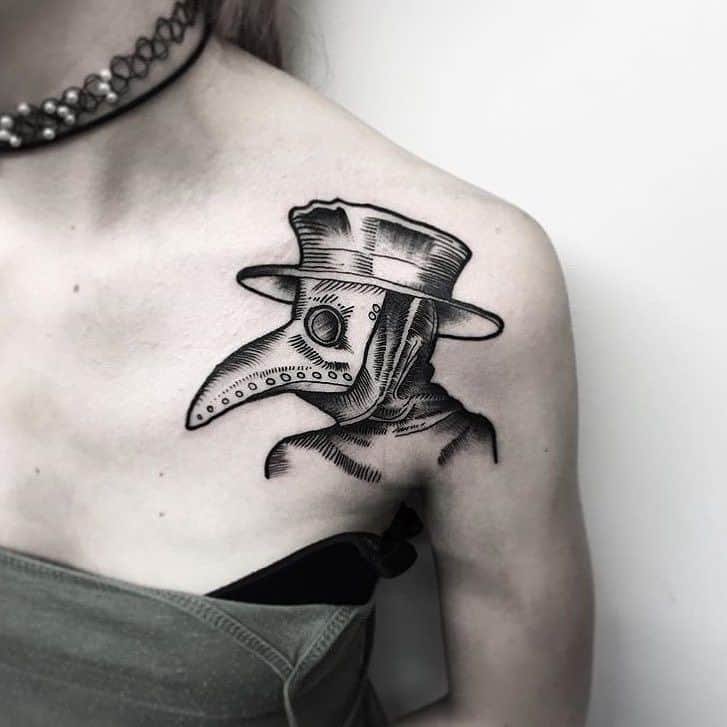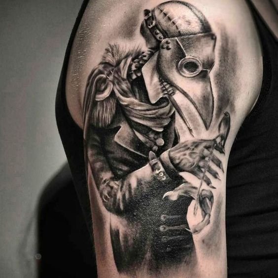 - Die Geschichte des Pestarztes besagt, dass er ständig vom Tod heimgesucht wird. Durch die Tätowierung des Pestarztes auf seinem Körper gibt der Träger der Welt zu verstehen, dass er keine Angst vor dem Tod hat und bereit ist, ihm direkt ins Auge zu sehen.