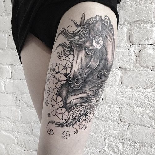 Die anmutigen, spektakulären und farbenfrohen Tattoos, die Pferde darstellen, sind sowohl bei Frauen als auch bei Männern sehr gefragt.
