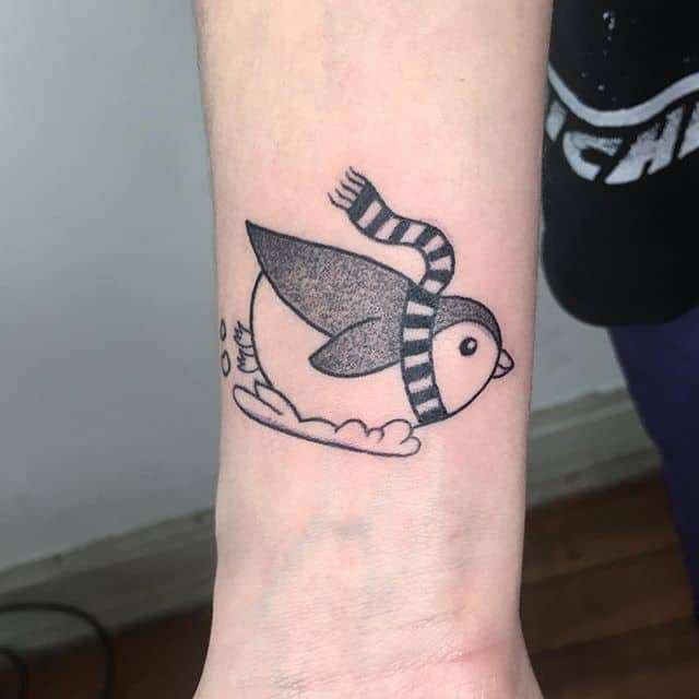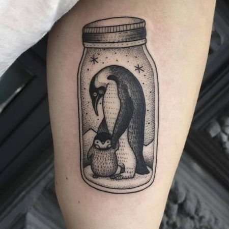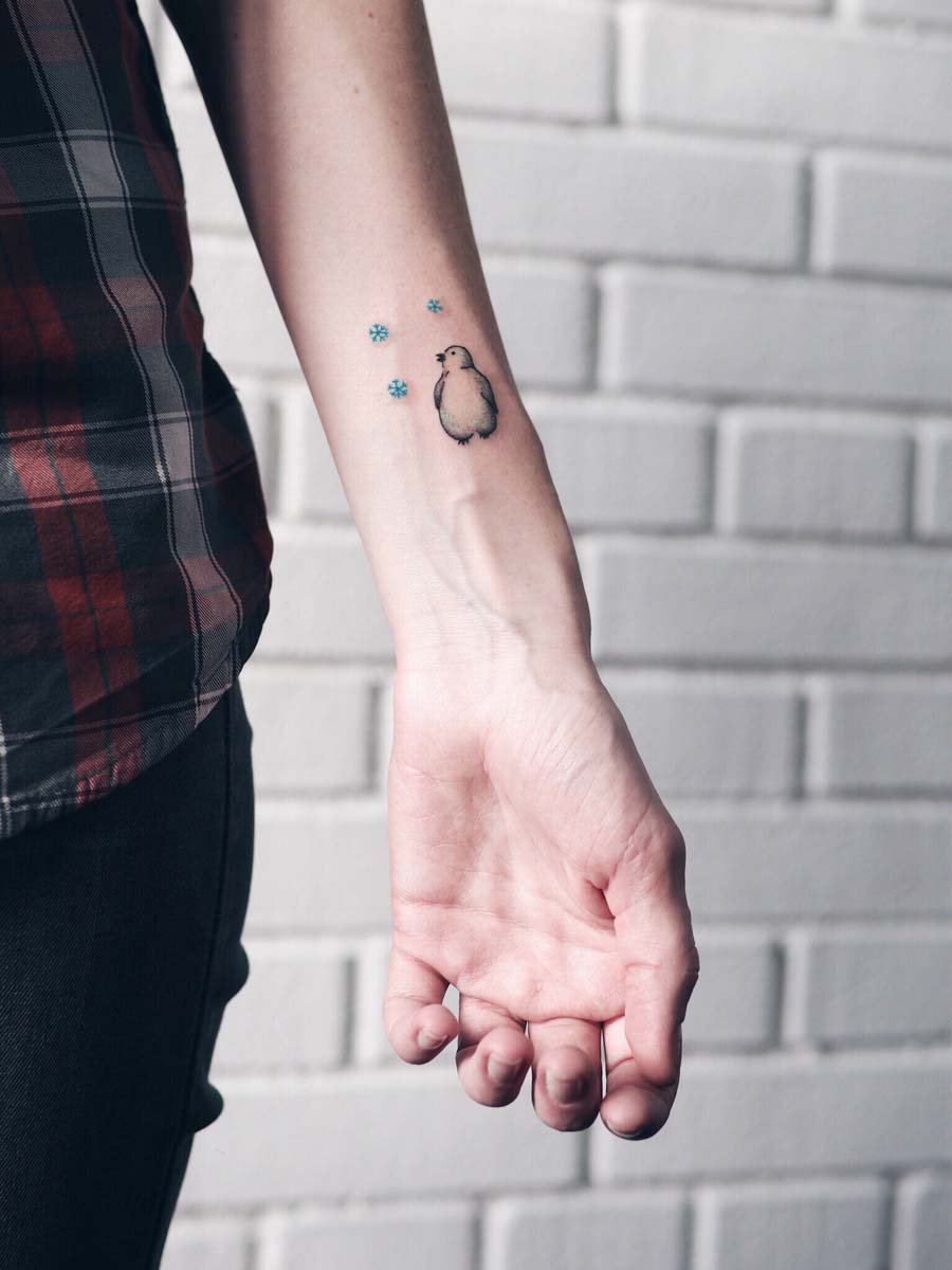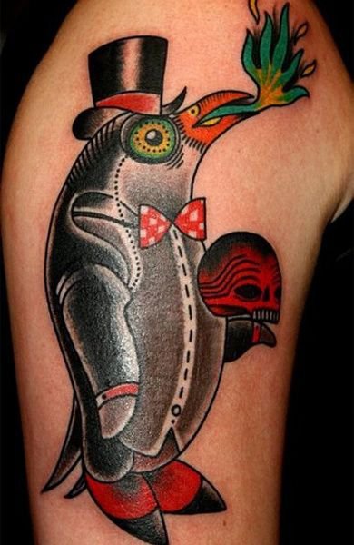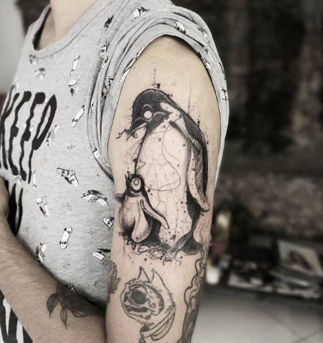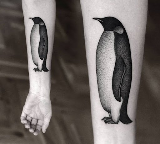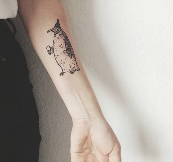 Tattoos mit einem Pinguin tragen keine Aggression, sie sind mit Positivem gefüllt.