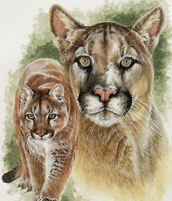 In der ersten Version ist der Puma bei der Jagd abgebildet, ein seltener Fall, in dem eine Wildkatze in Ruhe abgebildet ist. Beliebt sind Bilder eines Pumas, der springt und sich im Laufen an seine Beute heranschleicht. Oder ein Bild eines Pumas in seinem üblichen Lebensraum.