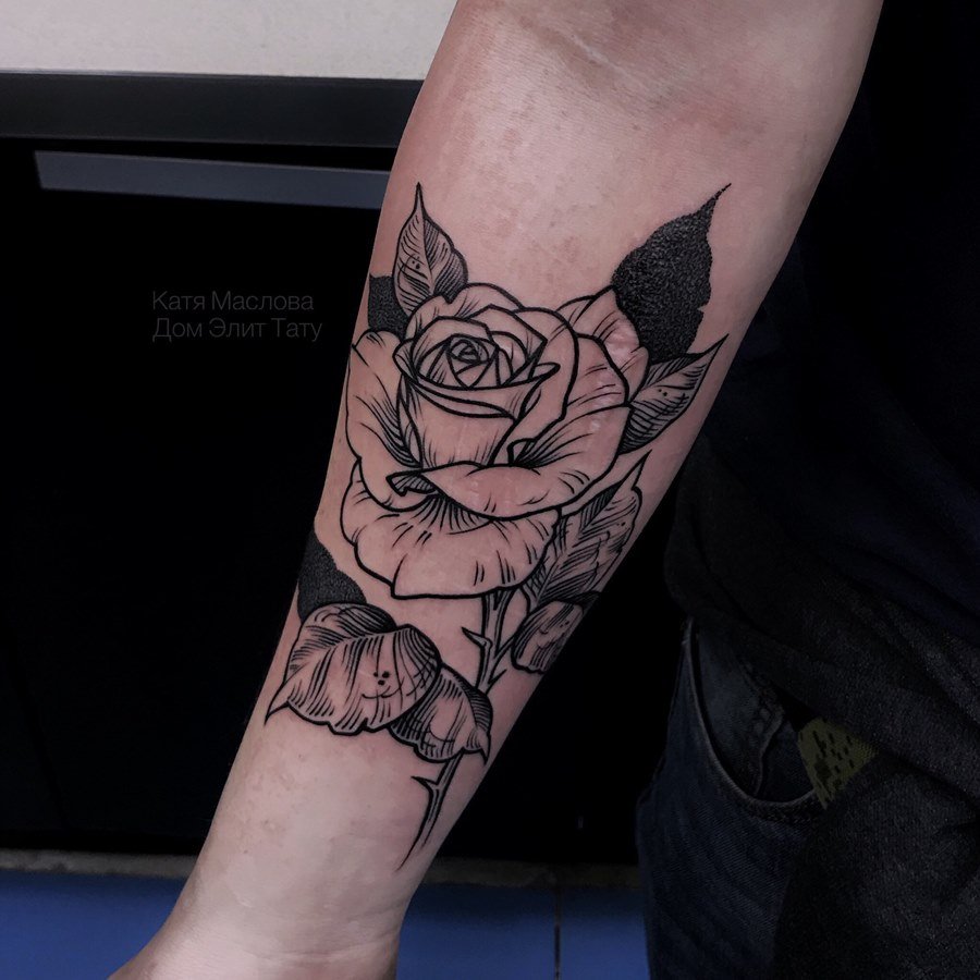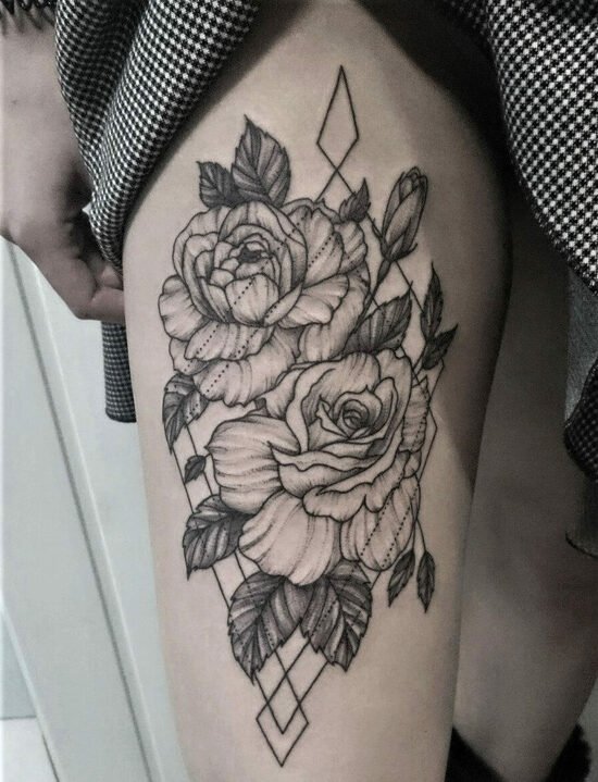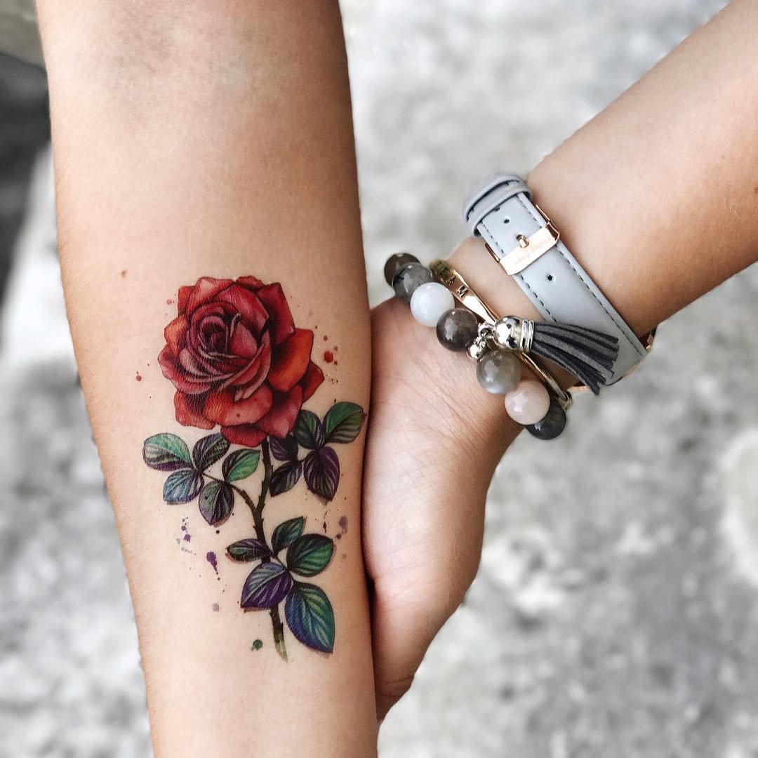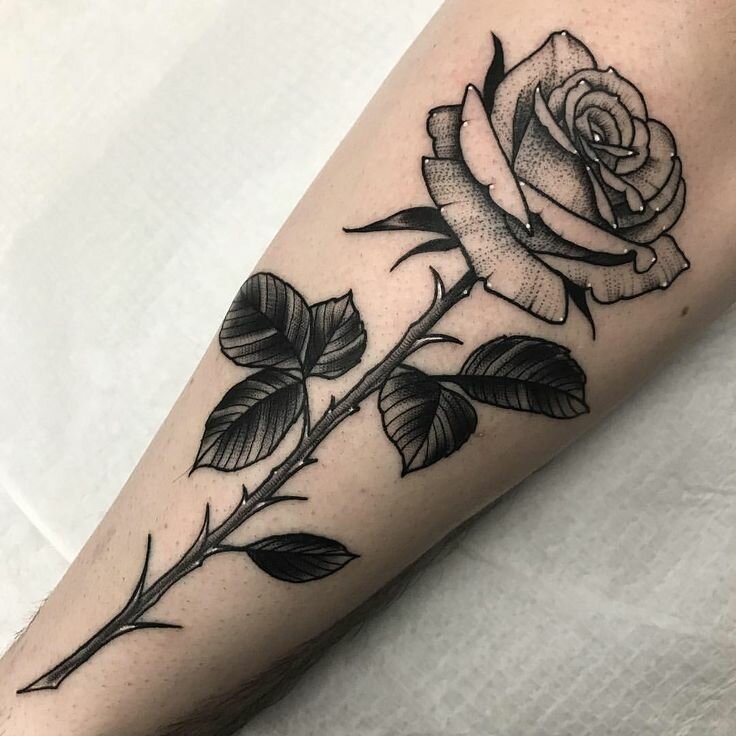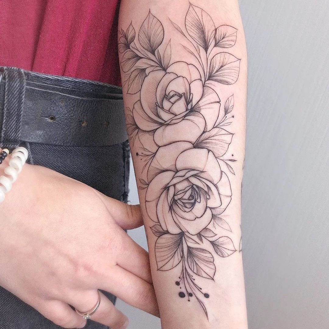 Das Rosen-Tattoo kann eine einzelne Rose, einen Blumenstrauß oder eine Kombination aus verschiedenen Bildern enthalten. Es kann die Knospe der Blume selbst sein oder eine Blume in voller Länge, alles hängt von den Wünschen des Kunden ab.
