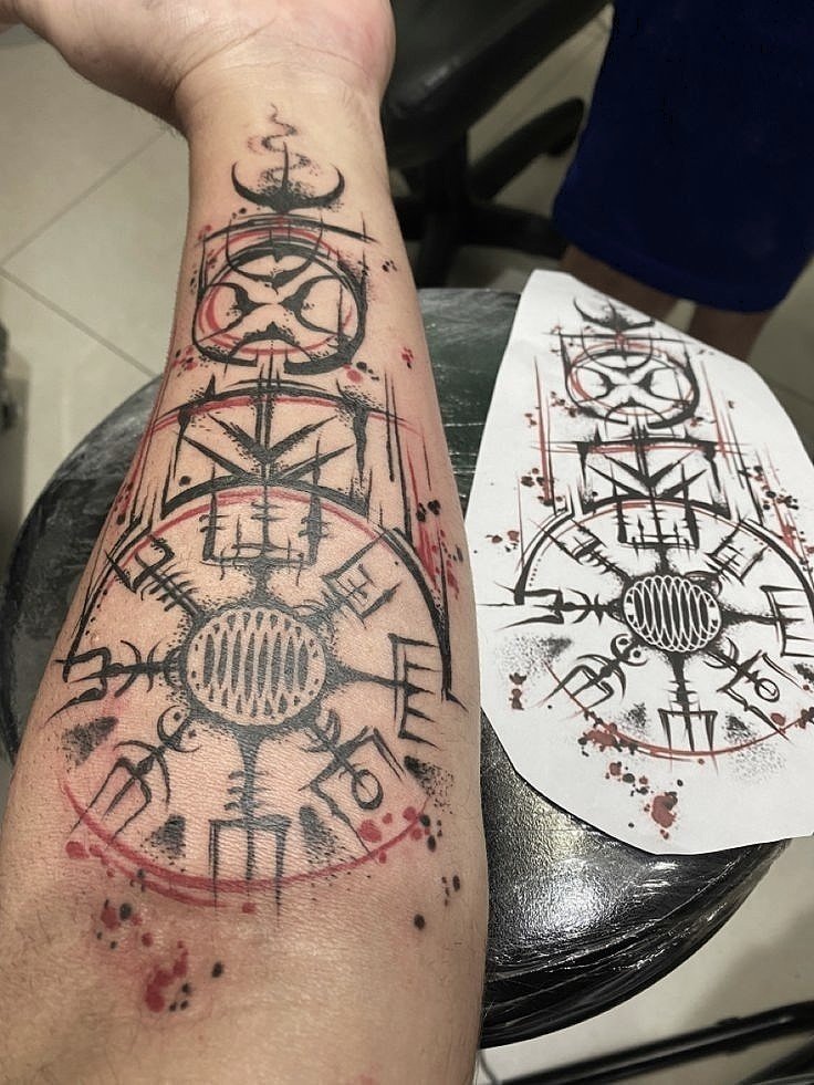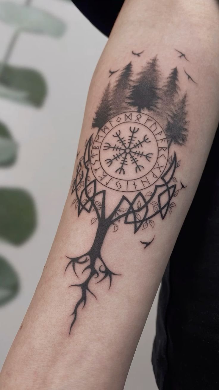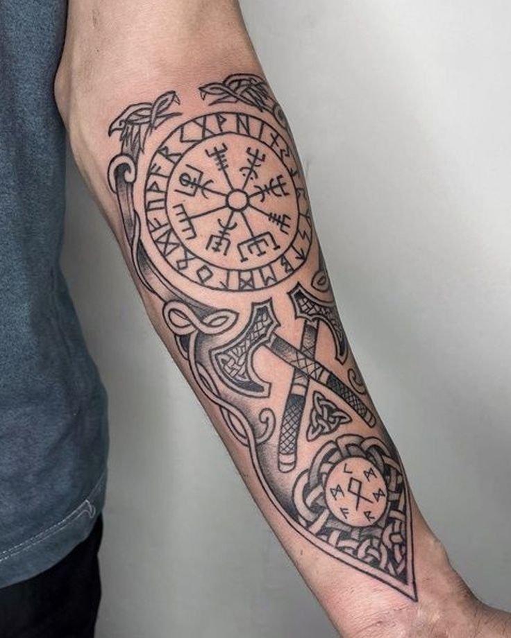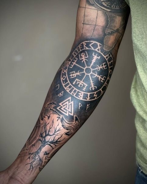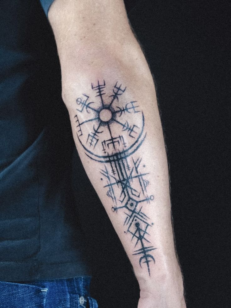 Besonders beliebt sind Einzelrunen auf Fingern oder Runenreihen entlang des Unterarms. Auch Blackwork und Dotwork verleihen den Motiven eine besondere Tiefe und Ausdrucksstärke.