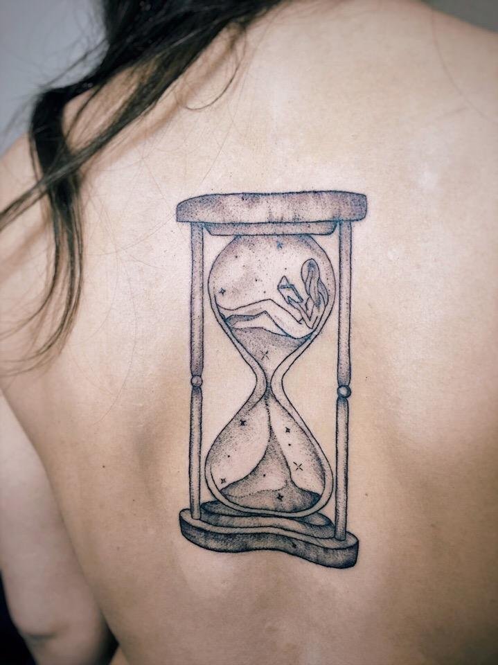 In der Regel wählen Frauen die Sanduhr-Tätowierung als Erinnerung daran, dass die Jugend vergeht und nicht mit Traurigkeit und Enttäuschung vergeudet werden sollte, sondern dass man jeden Tag genießen sollte.