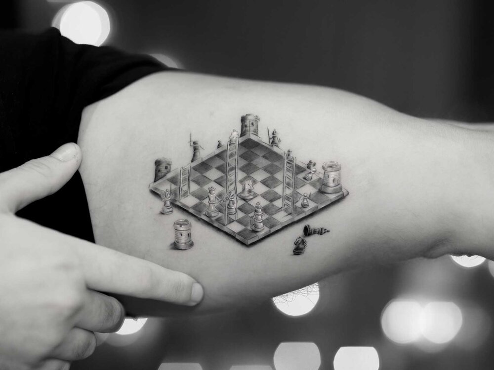 Aus diesem Grund wächst die Tattoo-Industrie kontinuierlich und ist seit vielen Jahren sehr gefragt. Heutzutage gibt es eine große Anzahl von Tattoo-Designs sowie Stile und Farben von Tattoos. Das Schach-Tattoo ist sowohl bei Frauen als auch bei Männer sehr gefragt. Schach ist ein Brettspiel, das bereits eine große Menge an Zeit populär ist. Das Bild auf dem Körper des Schachs hat seine eigenen Bezeichnungen.