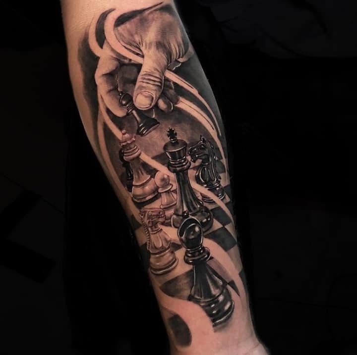 Das Schach-Tattoo auf dem Körper sieht sehr originell und auffallend aus.