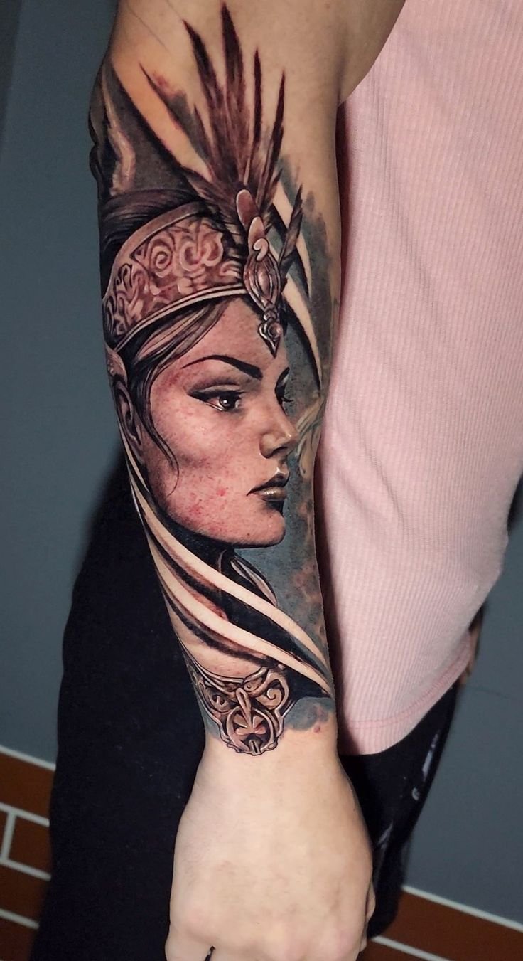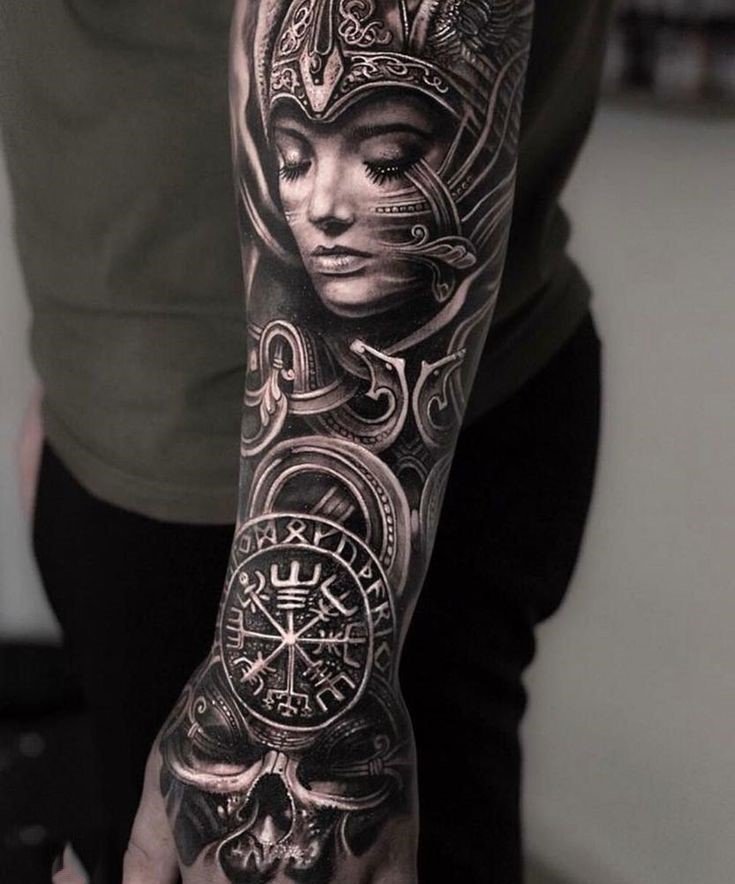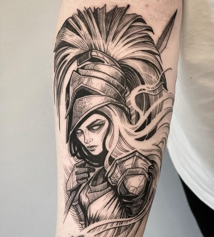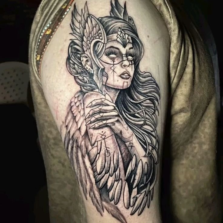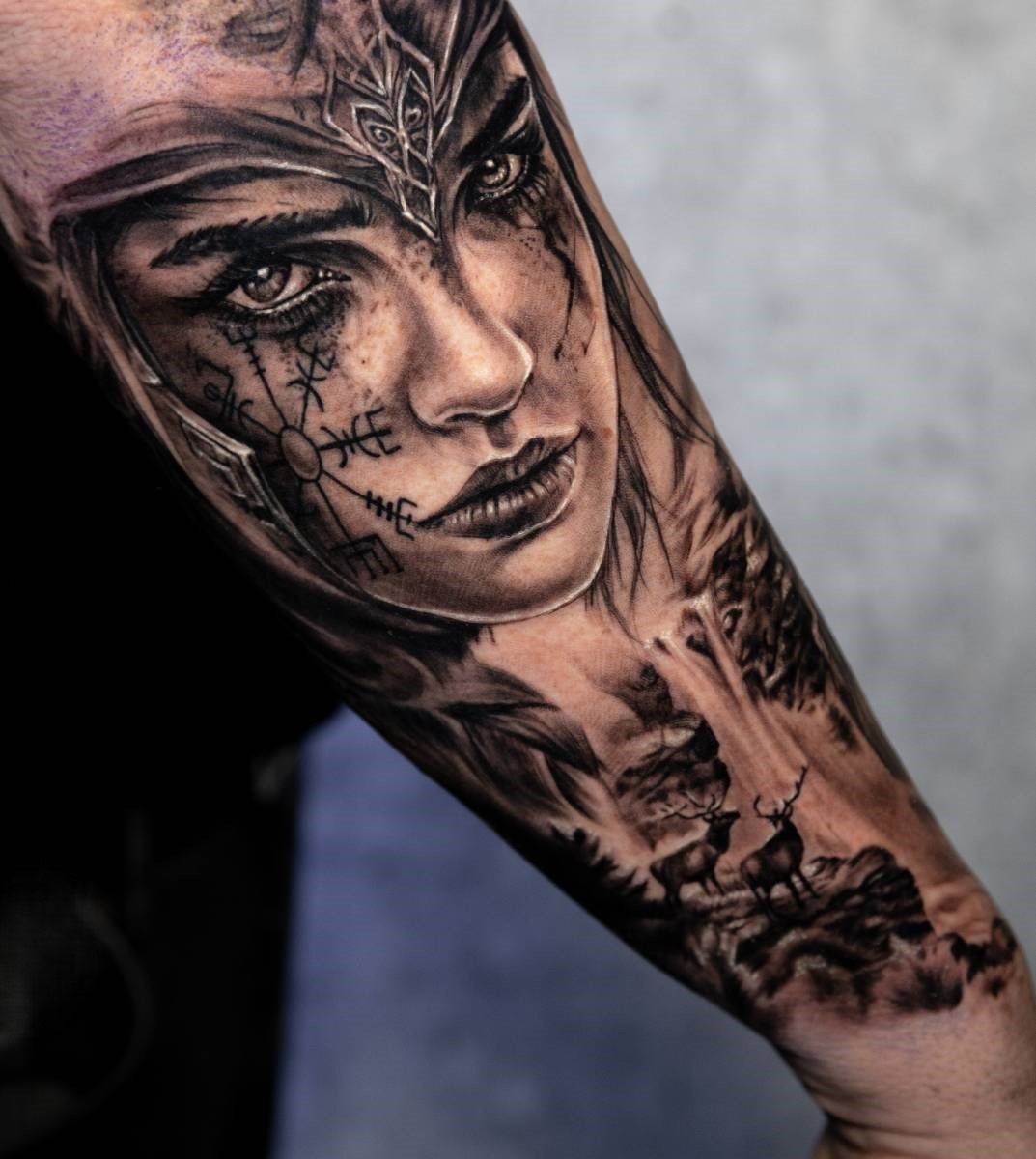 Wenn du auf der Suche nach Inspiration bist, findest du unten Schildmaid-Tattoo Vorlagen in verschiedenen Stilen: von feinen Line-Art-Silhouetten bis zu realistischen Kampfporträts mit nordischen Ornamenten.