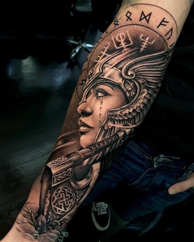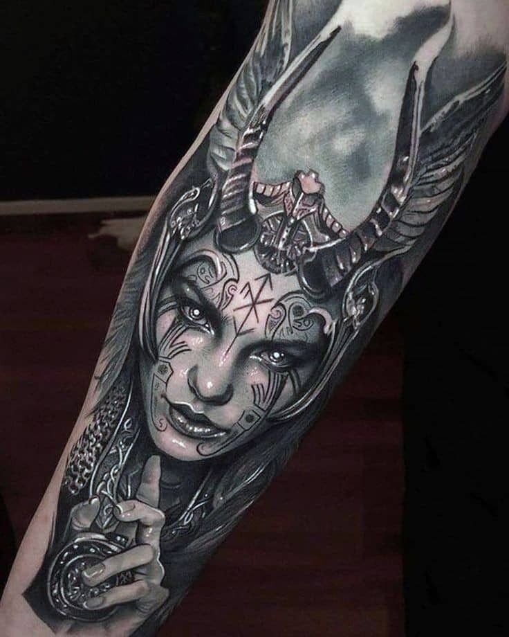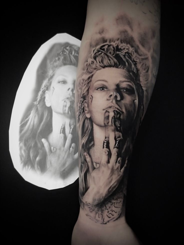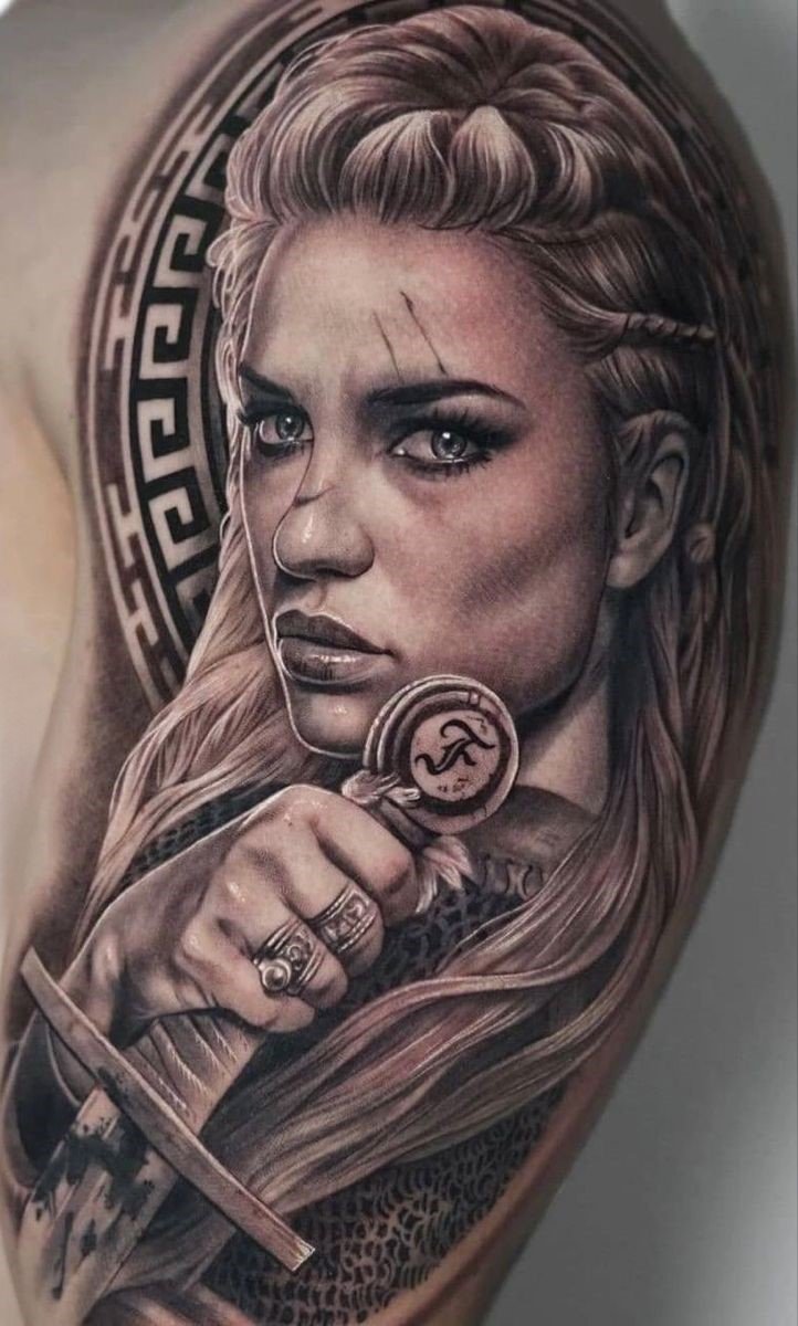 Das Tattoo symbolisiert daher nicht nur die Verbindung zu nordischer Geschichte, sondern auch Kampfgeist, Loyalität und spirituelle Stärke. Es steht für Frauen (und Männer), die ihren Platz im Leben selbst behaupten und innere Kraft mit Stolz tragen.