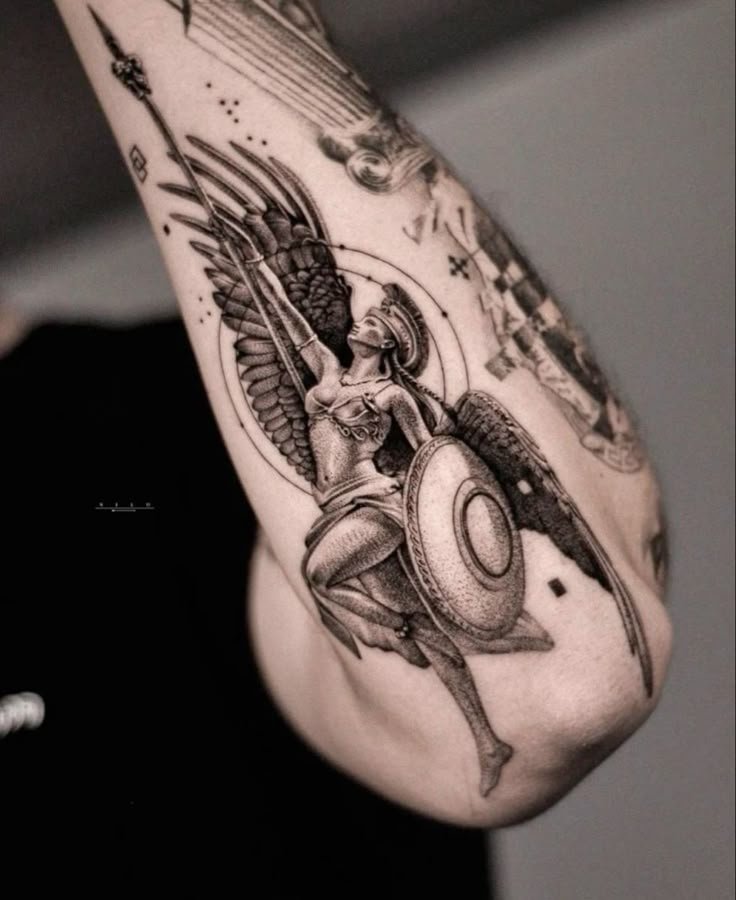 Auch für Männer trägt das Schildmaid Tattoo eine starke symbolische Bedeutung – als Anerkennung weiblicher Kraft, als Hommage an spirituelle Gleichgesinnte oder als Zeichen für Ehre und Schutz.