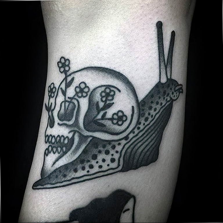 Um sich von der Masse abzuheben, kann die Tätowierung an einer exponierteren Stelle des Körpers vorgenommen werden: Arm, Schulter oder Unterarm, Bein, Hals. Die Vielfalt der Möglichkeiten für ein Schnecken-Tattoo ist sehr groß, es hängt alles von Ihren Wünschen ab, und unsere Meister werden Ihnen helfen, eine einzigartige Skizze einer Schnecke zu erstellen.