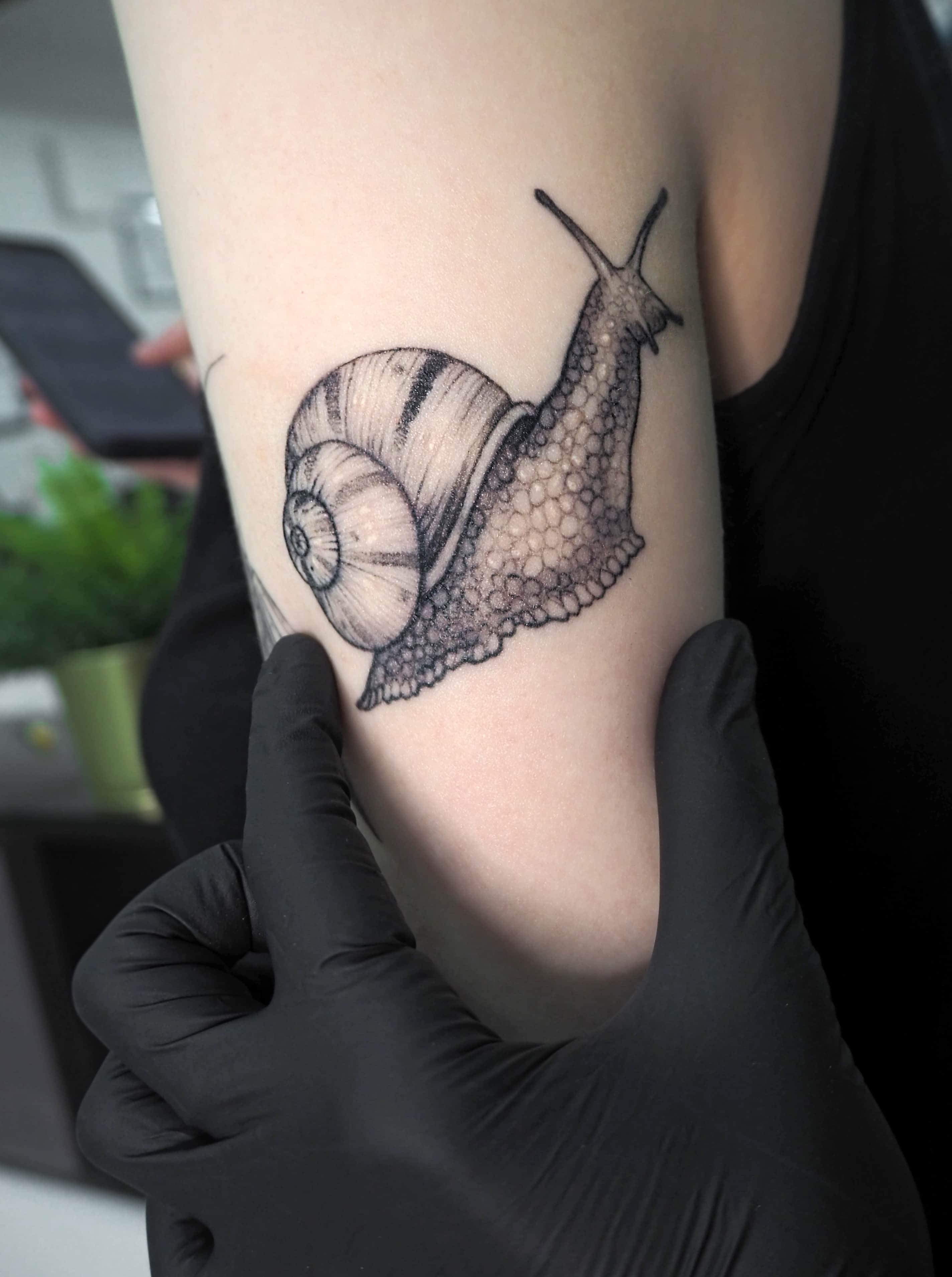 Das Bild erhält nicht die Aufmerksamkeit, die es verdient, und das aus gutem Grund. Denn das Schnecken-Tattoo ist mit einer Vielzahl von Bedeutungen versehen. Seit der Antike gilt die Schnecke als ein positives Symbol, und das Haus, in dem das Weichtier lebt, symbolisiert Schutz und Geborgenheit. In der heutigen Welt wird die Schnecke oft als Symbol für Langsamkeit und Gleichmütigkeit betrachtet.