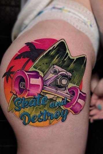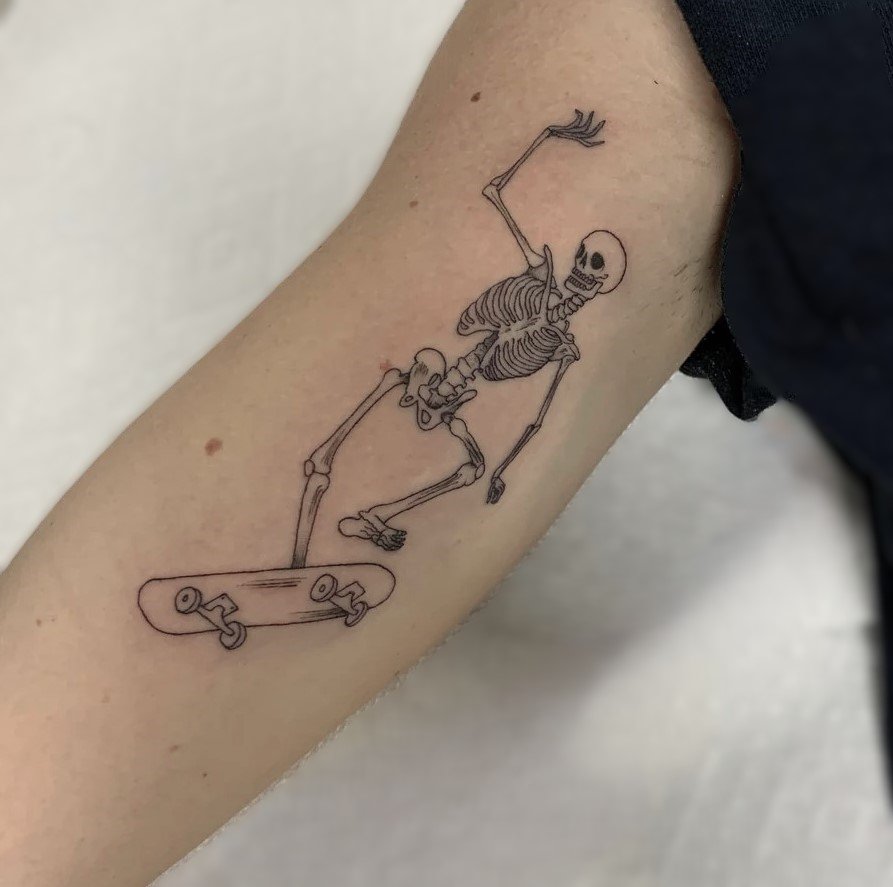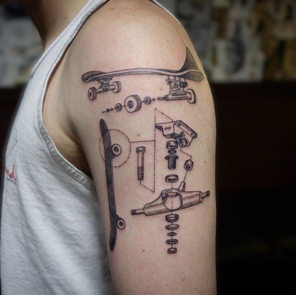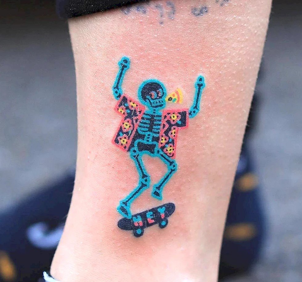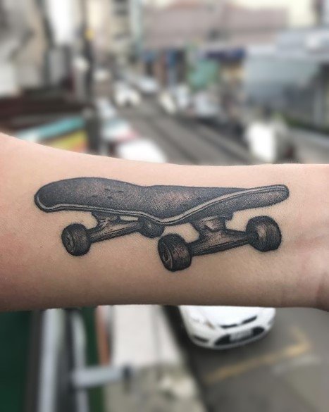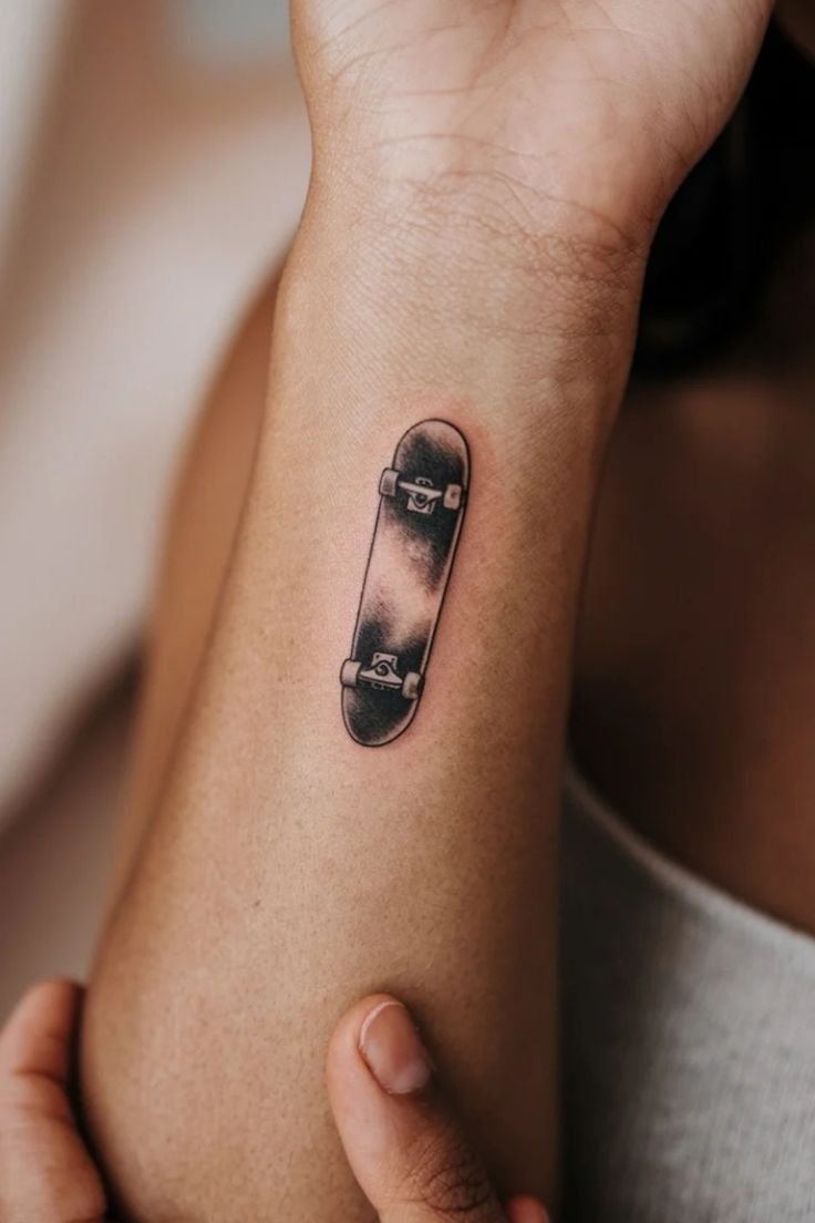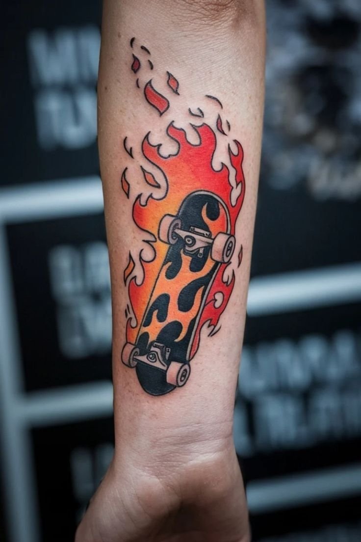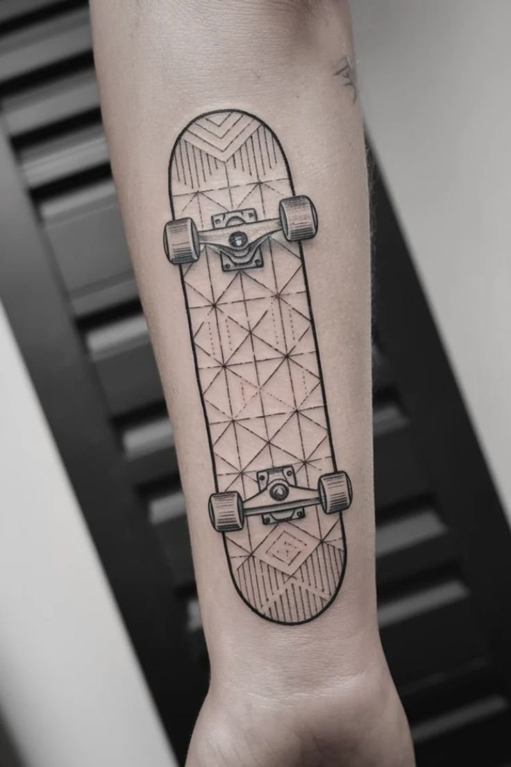 Ein Skateboard-Tattoo steht für Unabhängigkeit, Rebellion und eine Liebe zum Adrenalin.