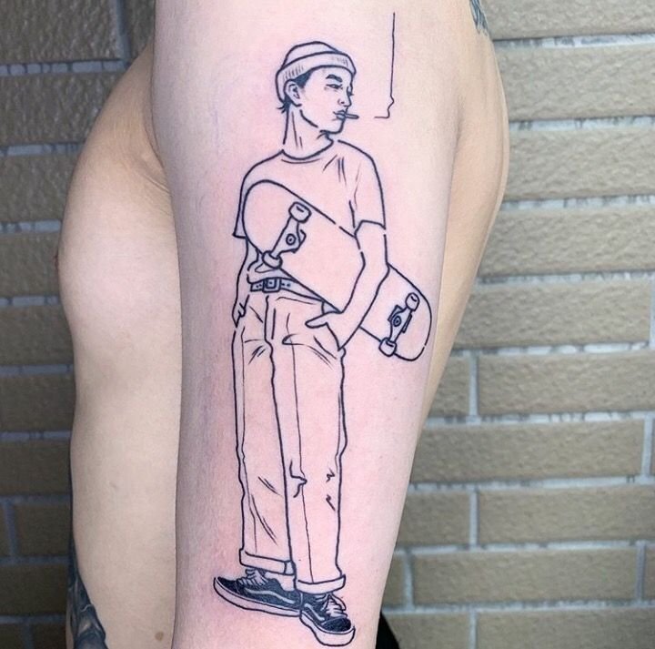 Wenn du auf der Suche nach Inspiration bist, findest du unten Skate-Tattoo Vorlagen in verschiedenen Stilrichtungen – von minimalistischen Line-Art-Motiven über realistische Skateboards bis hin zu dynamischen Szenen im Comic-Stil.