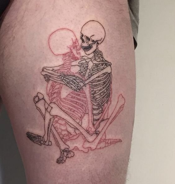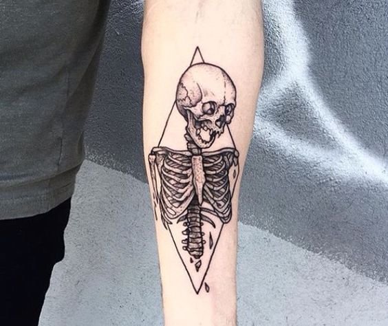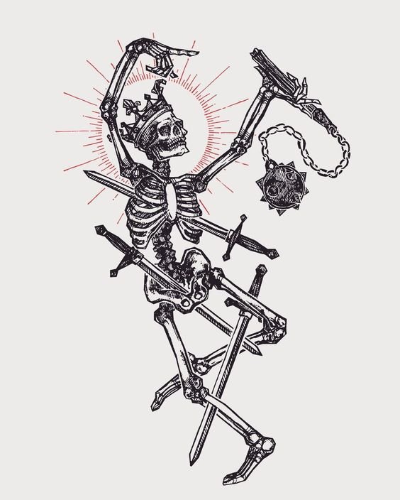 Ein solches Tattoo ist das eines Skeletts. Menschen, die ihren Körper mit Knochen oder dem Bild eines vollständigen Skeletts schmücken, lösen in ihrem Umfeld zwiespältige Gedanken aus. Ein derartiges Tattoo wird stets die Aufmerksamkeit der Passanten auf sich ziehen. Beim Anblick eines Skelett-Tattoos denkt man zunächst an Mystik, Verdammnis, Dunkelheit und Tod. Doch dieses Tattoo trägt keinerlei makaberen Unterton. Viele Menschen verbinden das Bild eines Skeletts auf dem menschlichen Körper immer noch mit etwas Negativem, Dunklem und Mystischem. Diese Vorstellungen sind jedoch längst überholt und haben im Laufe der Zeit ihre Verbindung zum Skelett verloren. Seltsamerweise trägt die Skelett-Tattoo-Skizze eine positive Bedeutung und lässt überhaupt keinen Raum für den Gedanken an den Tod.