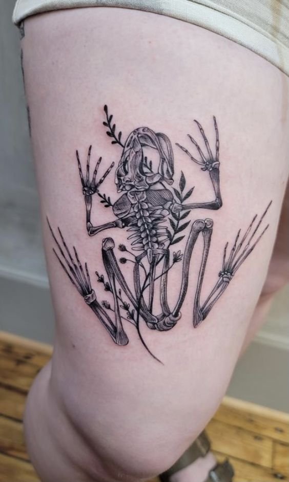 Die beliebtesten Skelett-Motive, die oft auf dem menschlichen Körper zu finden sind, umfassen: ein Fischskelett, ein Mädchenskelett, ein menschliches Skelett, Dinosaurierknochen, ein Schlangenskelett, ein Drachenskelett oder ein Katzenskelett.