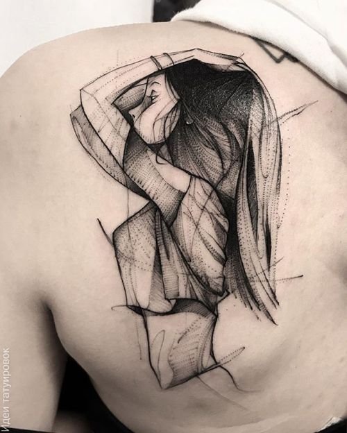 Ein Tätowierer, der in einer solchen Technik arbeitet, muss auf jeden Fall künstlerische Begabung und Geschicklichkeit haben. Immerhin sind Tattoo im Sketch Style oft nicht nur eine dreidimensionale Zeichnung auf dem Körper, sondern eine ganze Einstellungsfolge oder sogar eine Geschichte. Auf diesem Bild können Sie die gesamte Biographie eines Menschen, die wichtigsten Ereignisse seines Lebens herausfinden. Fans dieses Stils sind in der Regel kreative Menschen und heben sich gerne von der Masse ab.