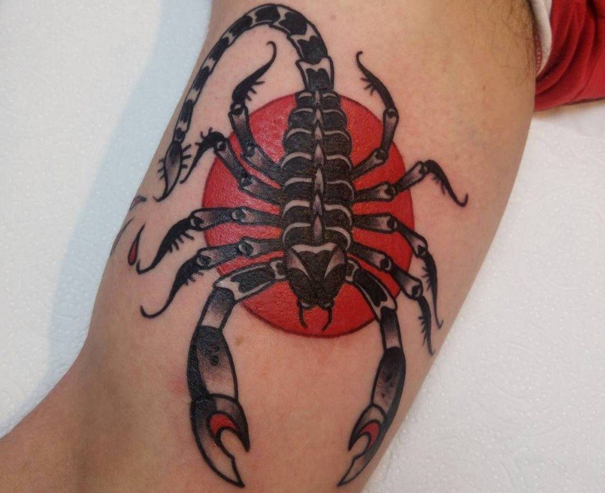 Es sollte auch daran erinnert werden, dass der Skorpion eines der Tierkreiszeichen ist. Nicht selten wählt man deshalb dieses Bild für eine Tätowierung. Diese Menschen neigen dazu, emotional, stur, sensibel, intuitiv und selbstbewusst zu sein.