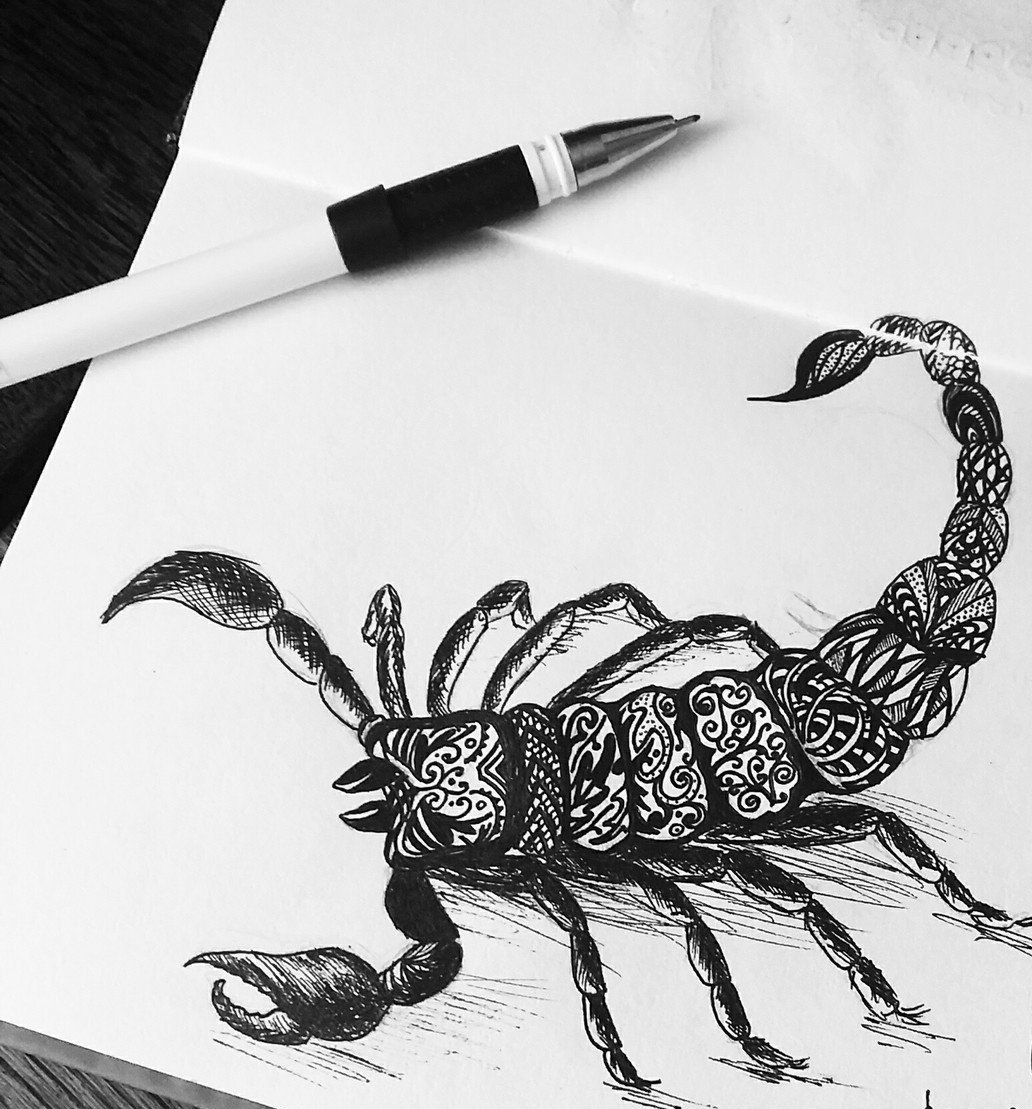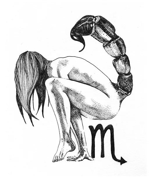Die Skizze des Skorpions hat außerdem folgende Konnotationen: Leidenschaft, Schutz, Selbstaufopferung, Mut und Adel.