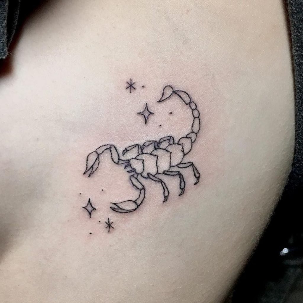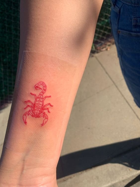 Das Skorpion-Tattoo sieht auf dem Unterarm, dem Hals und dem Bauch toll aus.