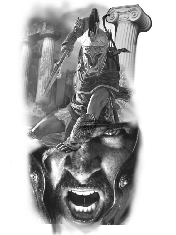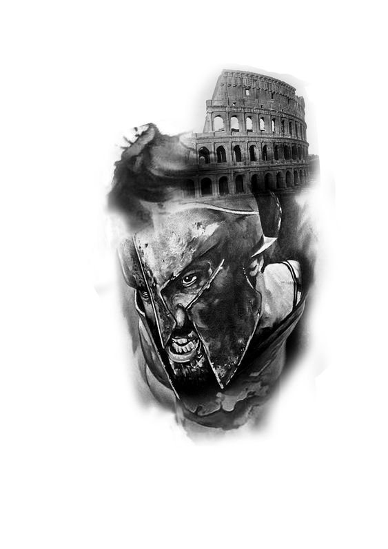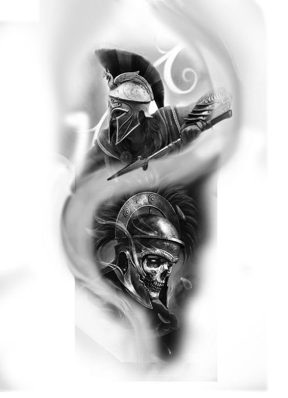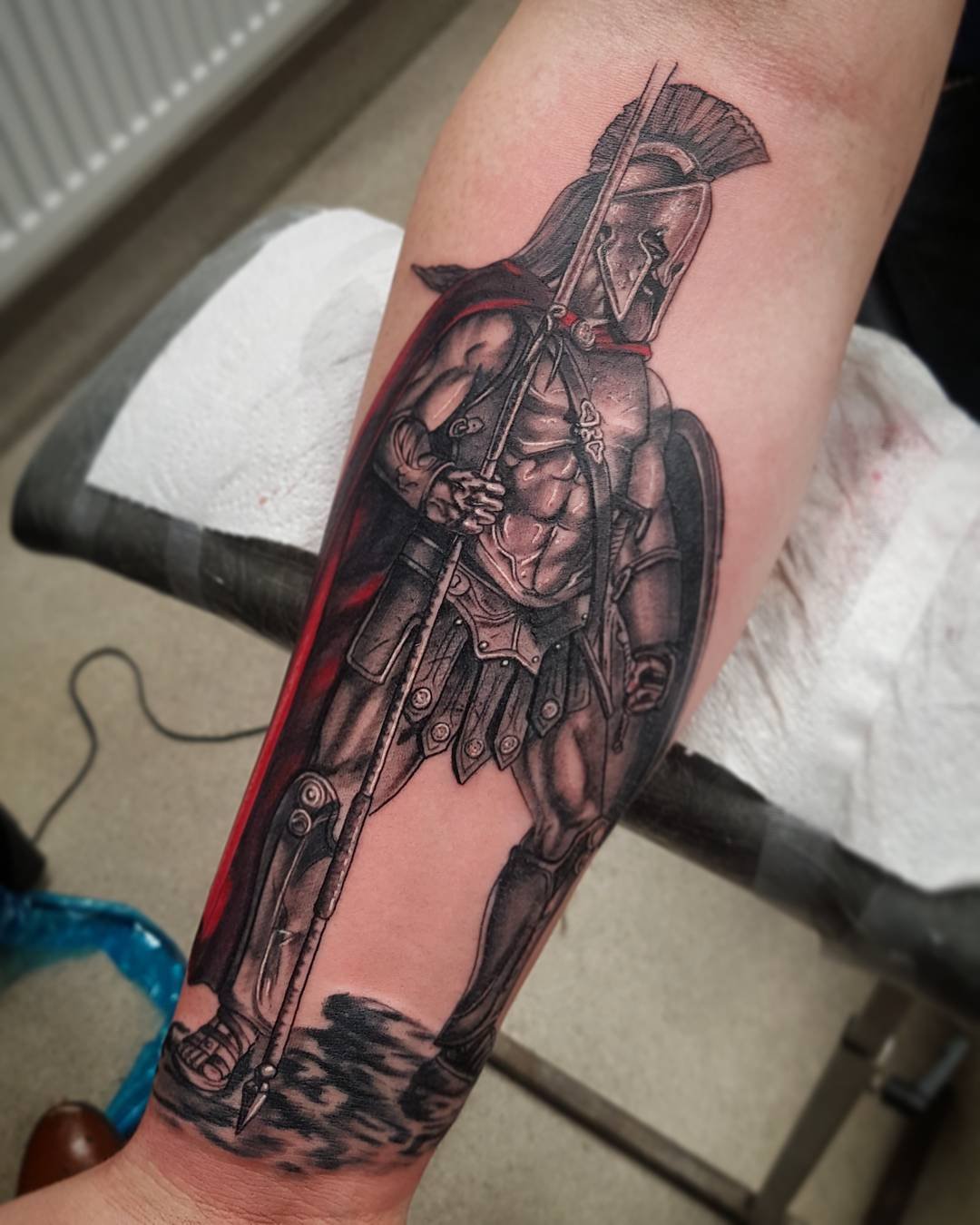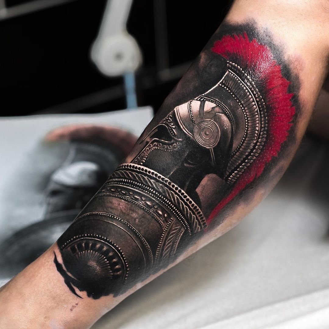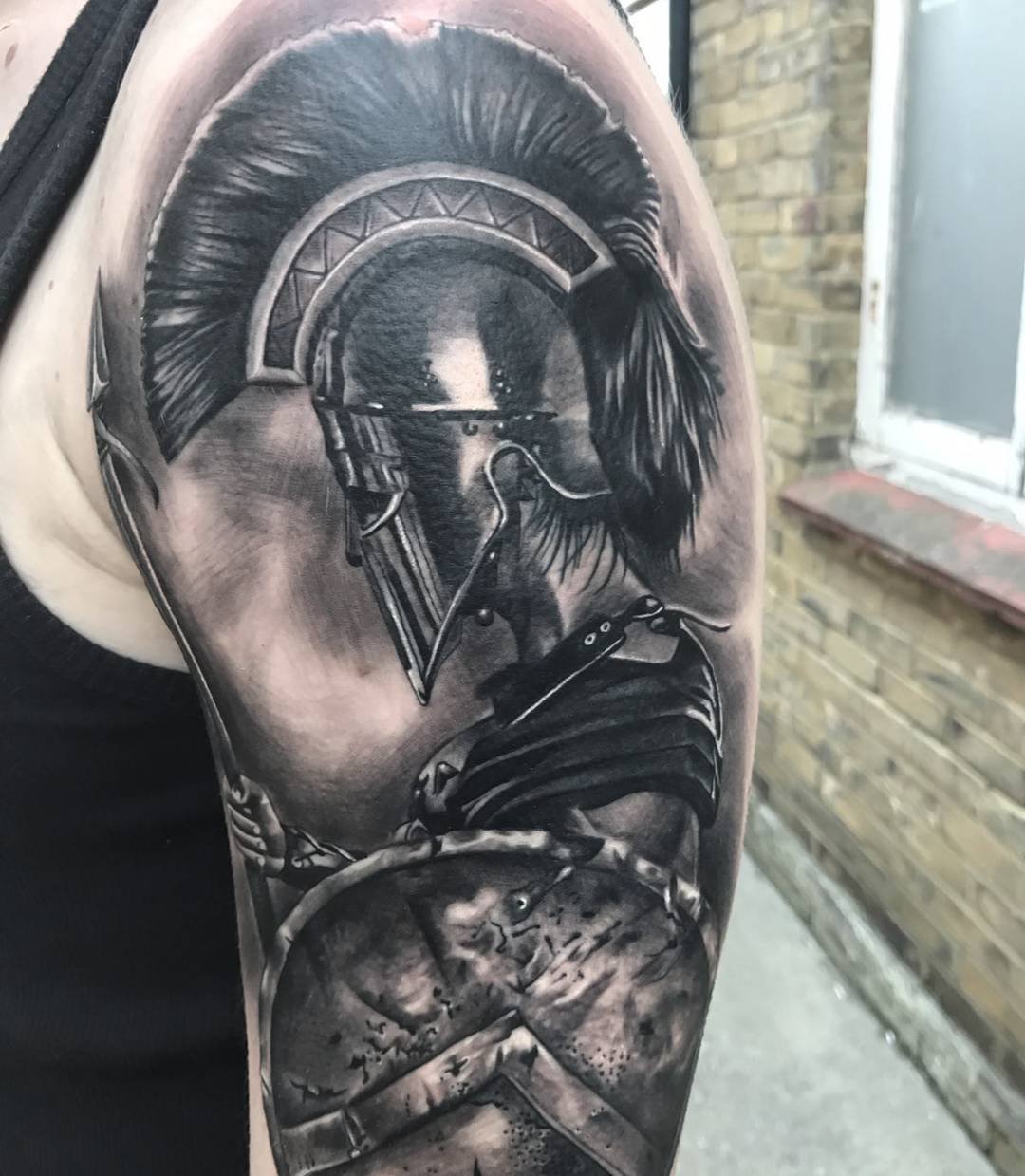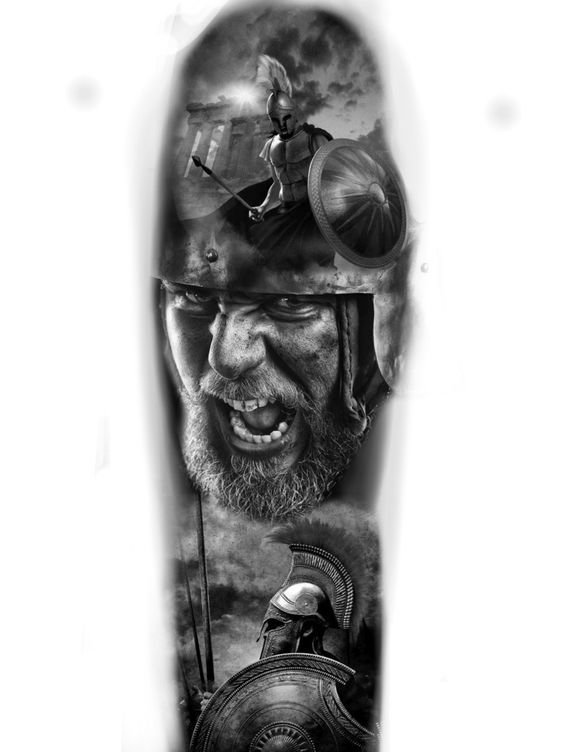 Die spartanische Tätowierung sieht am besten in einem realistischen Stil aus.